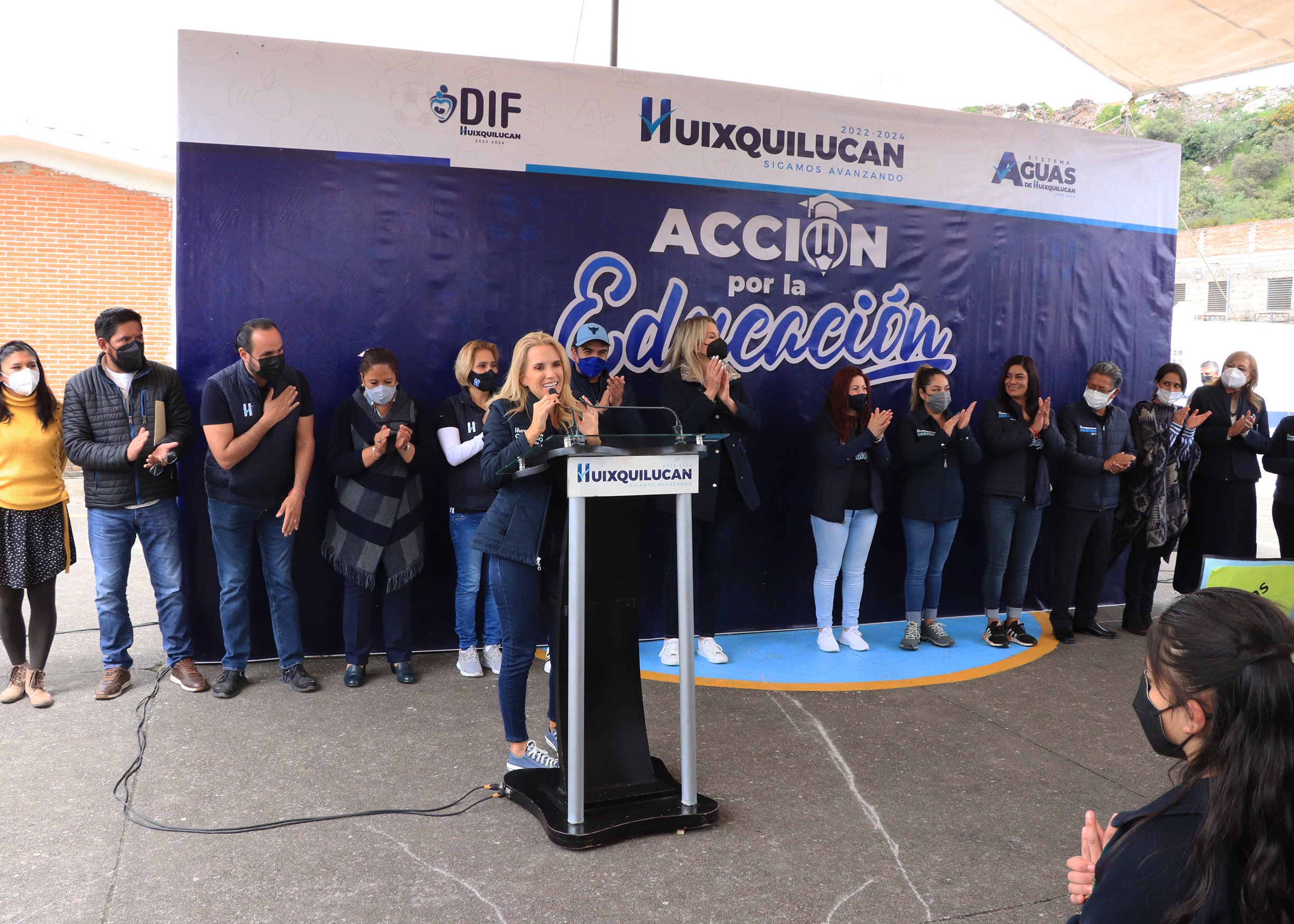 Ante alumnos, personal educativo, así como madres y padres de familia de esta institución, la presidenta municipal, Romina Contreras Carrasco, reiteró la importancia que tiene para su administración impulsar la preparación académica de las y los huixquiluquenses, por lo que lleva a cabo diversos programas, entre los que destacan la mejora de escuelas y la entrega de becas, con la que, hasta ahora, se han beneficiado 12 mil alumnos; entre otras acciones.