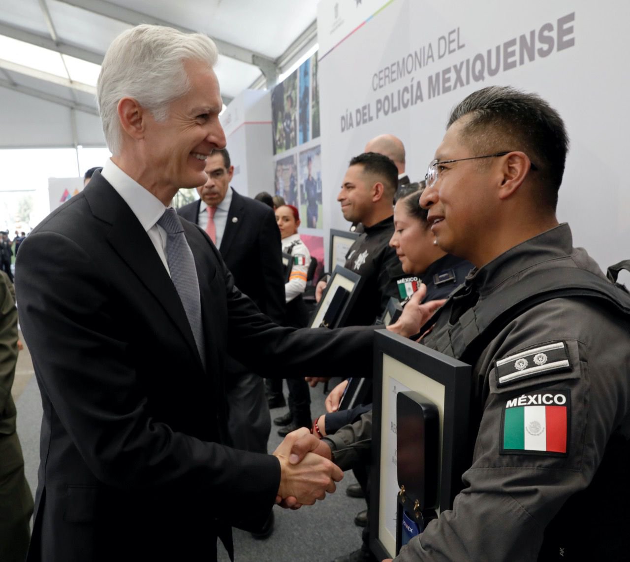 «Por sus aportaciones, por su lealtad, por su compromiso, en su día premiamos sus sacrificios, su trabajo, su esfuerzo, refrendamos nuestro respeto hacia las mujeres y hombres que portan el uniforme de la Policía del Estado de México y todos los días están listos y listas para cumplir con su misión de servir y proteger a la sociedad.