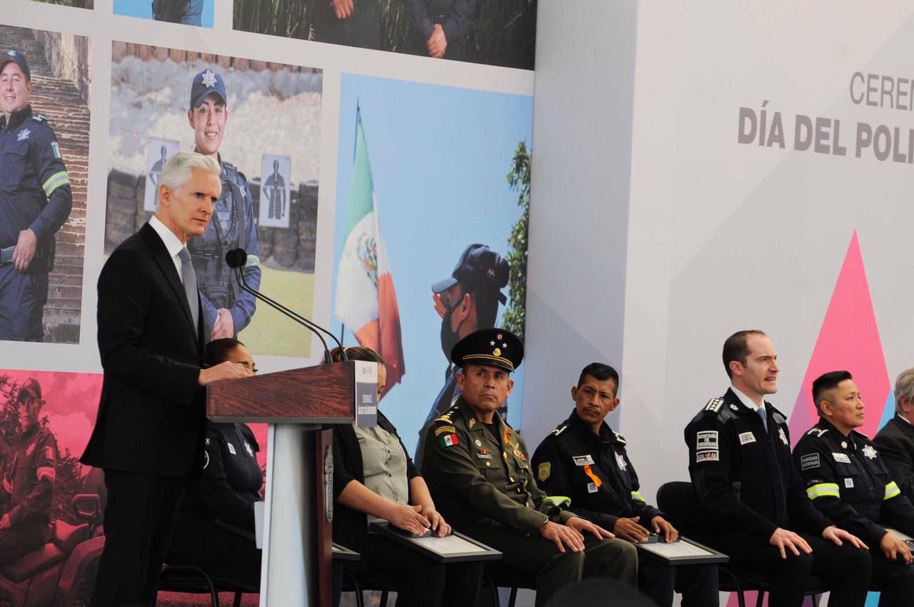 En reconocimiento a su labor cotidiana y al sacrificio que hacen para ofrecer más seguridad a la ciudadanía, el Gobernador Alfredo Del Mazo Maza refrendó su compromiso para continuar mejorando la labor policial y aseguró que, a poco más de cinco años de que inició su administración, hoy el Estado de México cuenta con una mejor policía, que está más preparada para hacer frente a la delincuencia.