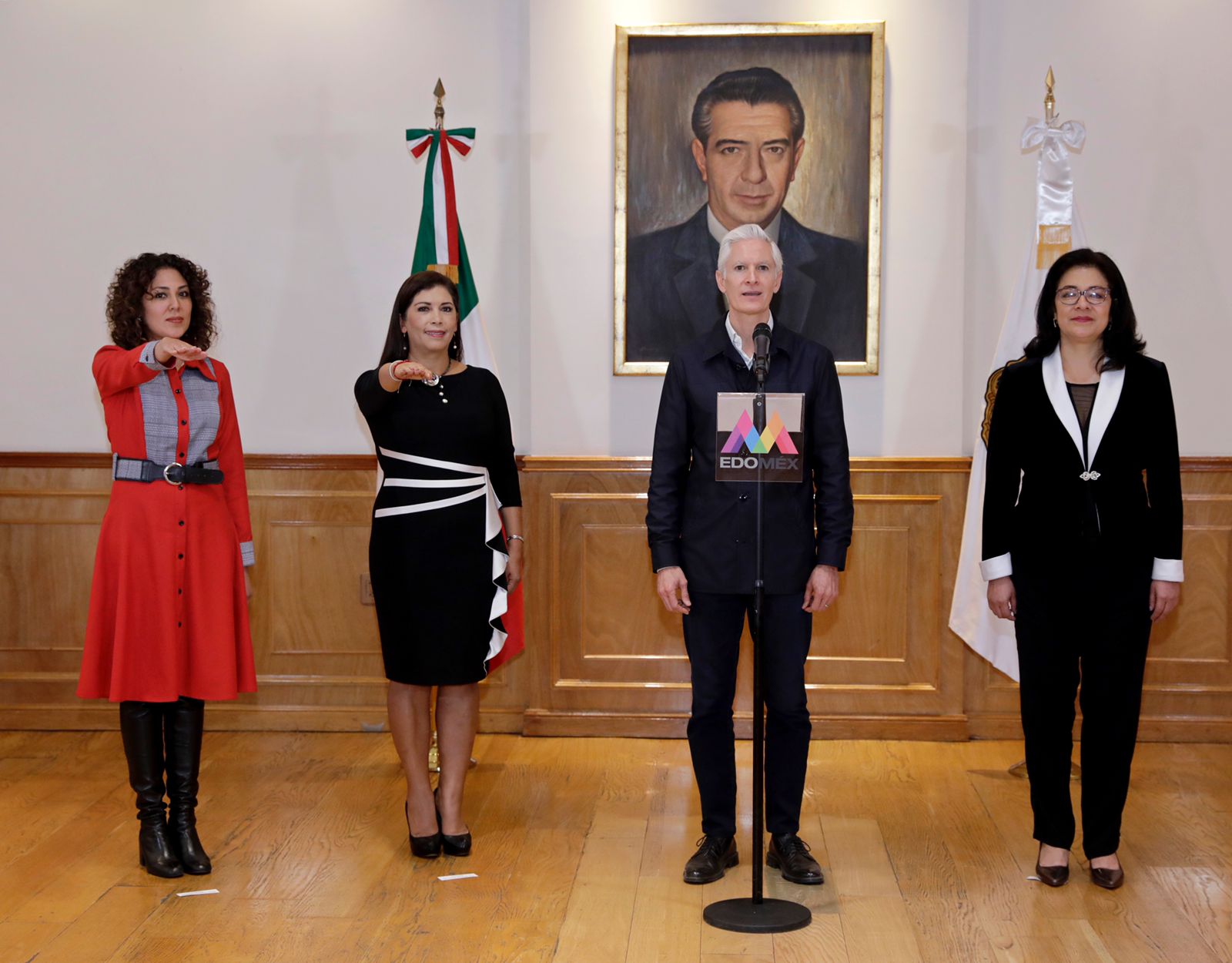 El Gobernador Alfredo Del Mazo Maza tomó protesta a Brenda Alvarado Sánchez y a Denisse Ugalde Alegría, como Secretarias de Desarrollo Social y de las Mujeres, respectivamente.