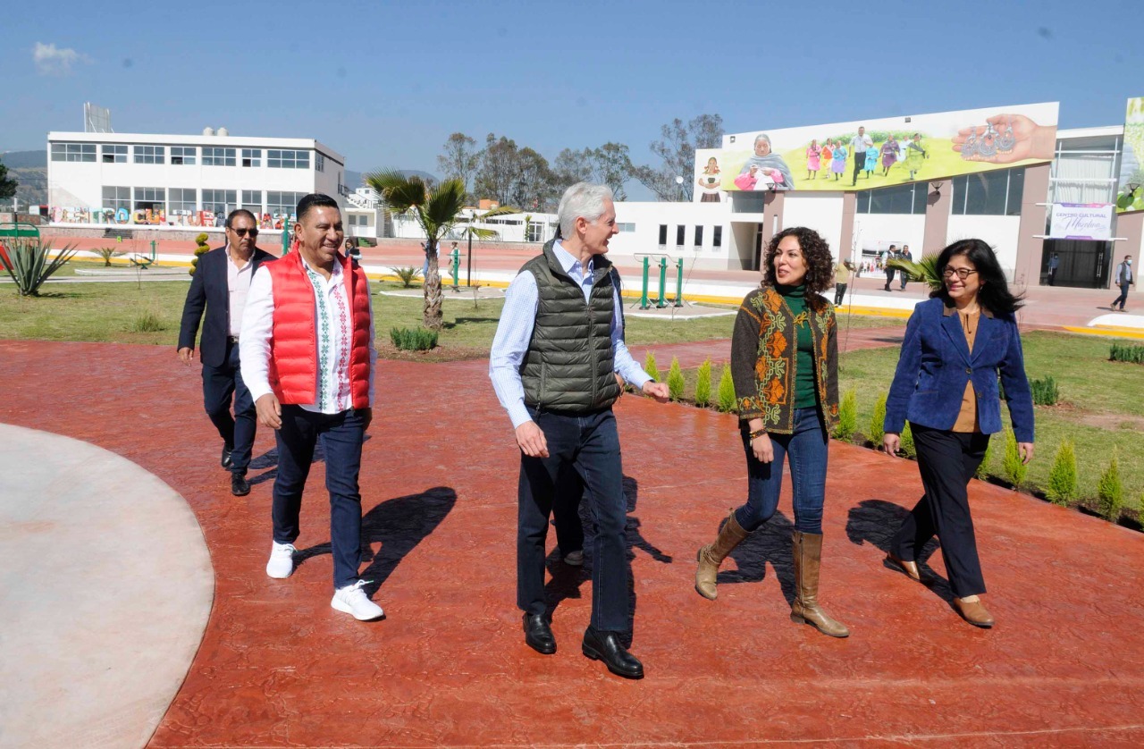 “Y me da mucho gusto también inaugurar este Centro Cultural Mazahua, un gran esfuerzo del municipio para tener un espacio en donde las familias vengan a convivir, a hacer deporte, a divertirse, también a atenderse porque tiene distintos servicios, está Protección Civil, está la Policía Municipal, un auditorio muy amplio para darle servicio aquí a distintas actividades en la comunidad”, expuso.