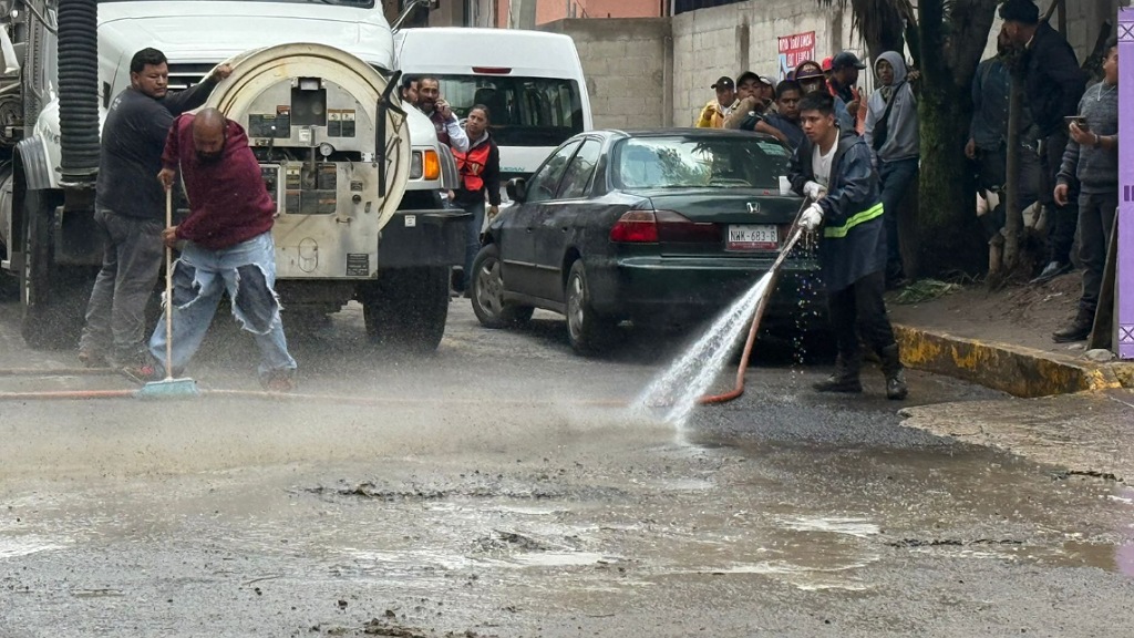 Para la atención de las familias afectadas tras la lluvia atípica de ayer domingo, se encuentran trabajadores de OAPAS y Servicios Públicos apoyando en las labores de limpieza y de igual forma todas las áreas del Gobierno Municipal apoyaron en el lugar. Del mismo modo, el Grupo Tláloc de la CAEM, quien apoyó en todo momento en la limpieza y desinfección de la zona.