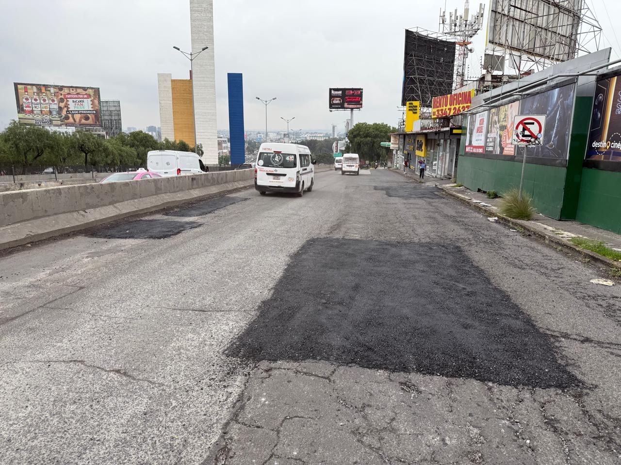 - Gobierno Municipal a través de Servicios Públicos, trabaja de manera anticipada, ya realizó bacheo a la altura de Plaza Satélite, ante el evidente deterioro de la carpeta asfáltica.