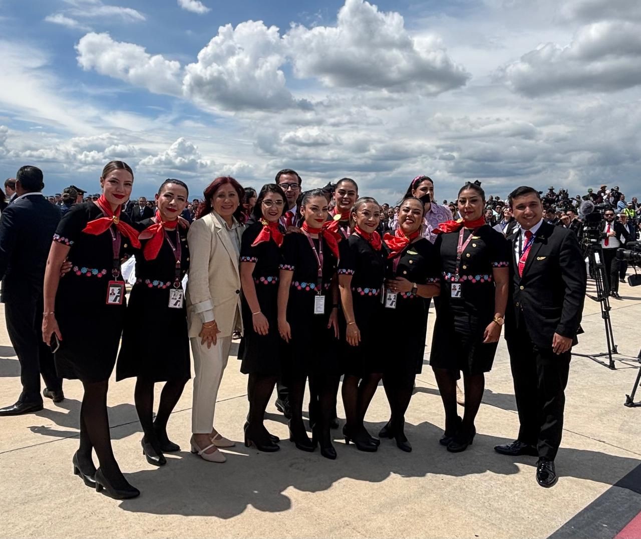 “Atrás quedaron los días aciagos de esa empresa, que en tiempos de la cuarta transformaron retomó el vuelo y que tiene como objetivo ofrecer menores costos a los usuarios, un mejor servicio y conectar regiones, indicó al ser entrevistada en el Aeropuerto Internacional Felipe Ángeles (AIFA).