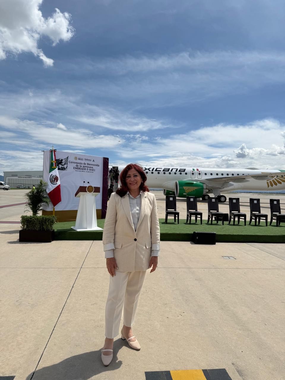 Tras expresar su beneplácito por el arribo del primero de 20 aviones que adquirió Mexicana de Aviación, la presidenta municipal de Tecámac, Rosi Wong Romero, afirmó que ello es el reflejo de que México vuela con rumbo y con certidumbre de la mano de Claudia Sheinbaum y en beneficio del pueblo.