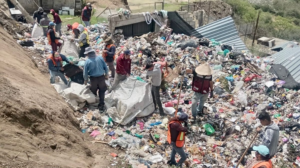 - En la colonia Santiago Tepatlaxco, tras la volcadura de una góndola proveniente de la Cdmx cerca de un centenar de trabajadores de Servicios Públicos limpiaron la zona.