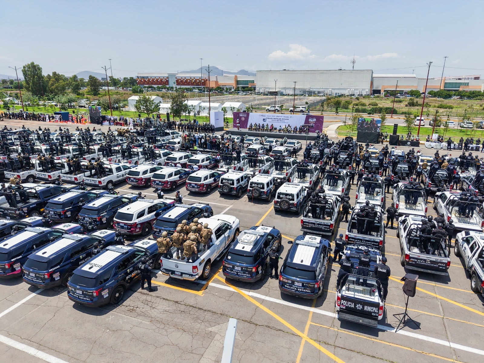 Este evento se llevó a cabo en el municipio de Nezahualcóyotl, para encabezar el arranque de los trabajos que las fuerzas de seguridad de los tres órdenes de gobierno realizarán en los 11 municipios que integran la Estrategia Operativa Oriente, del que Naucalpan es parte.
