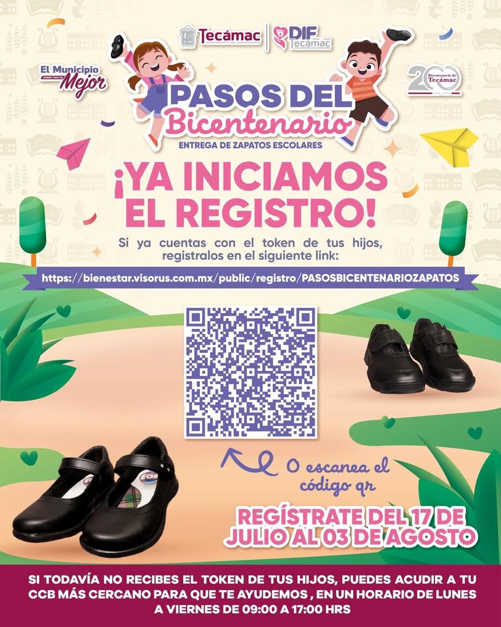 Este jueves, el gobierno municipal de Tecámac, a través del Sistema DIF, inició el registro en línea del programa “Pasos del Bicentenario”, mediante el cual se otorgarán de forma gratuita zapatos escolares a menores de 3 a 14 años de edad.