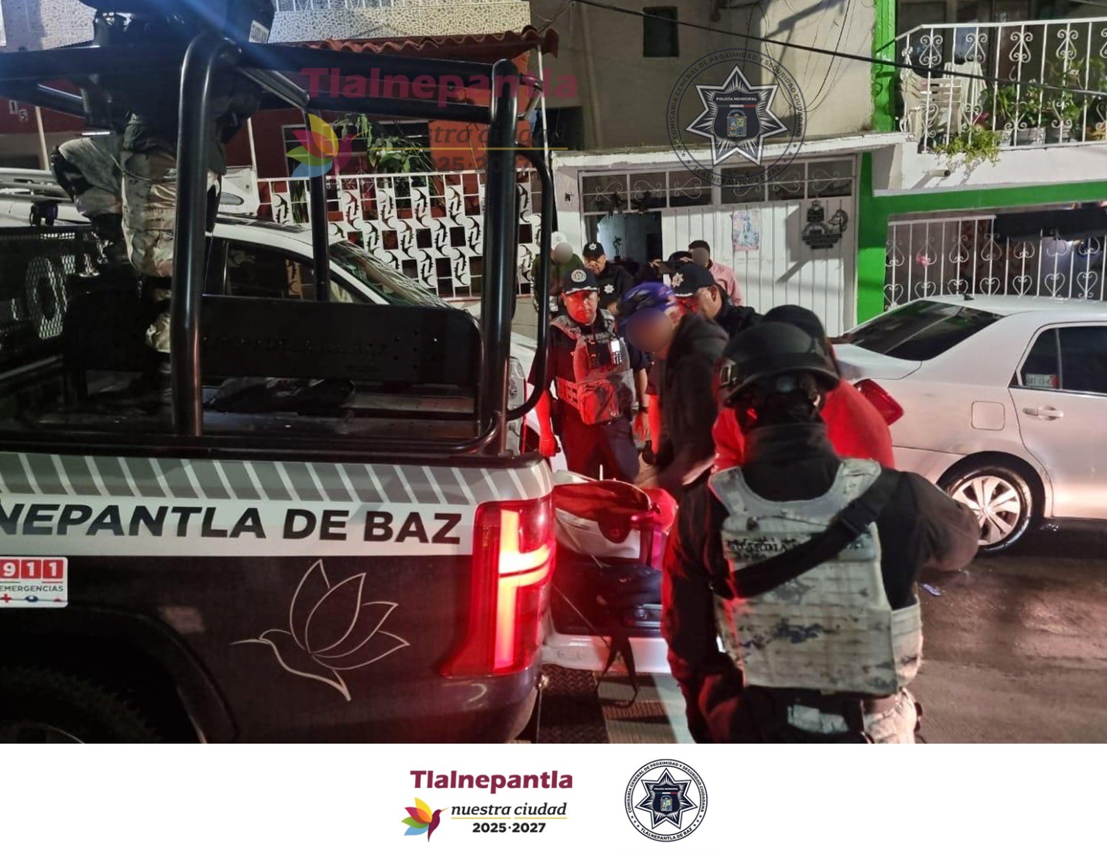 En el marco del Operativo Estrategia Oriente, fuerzas de la Comisaría General de Proximidad Ciudadana y Seguridad de Tlalnepantla, de la Secretaría de la Defensa Nacional (Sedena) y la Marina, realizaron acciones conjuntas de prevención y seguridad en diferentes comunidades del municipio.