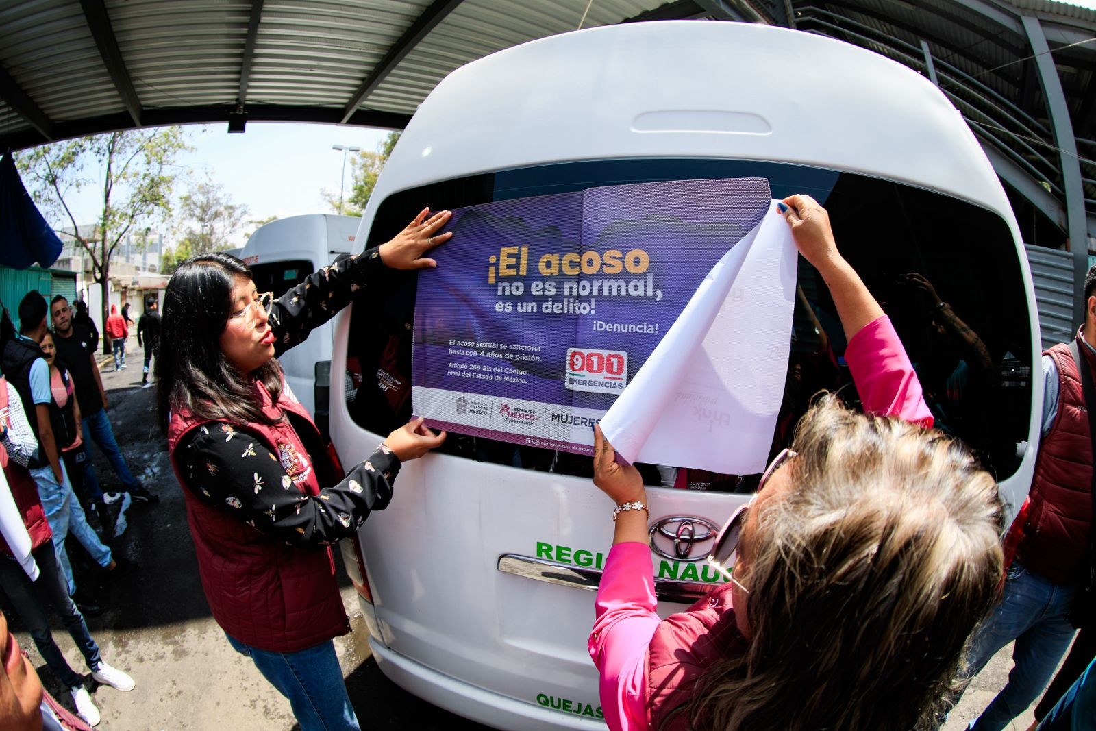- Inicia estrategia en el Paradero Sur Metro Toreo con la colocación de calcomanías en algunas unidades que informan a las mujeres que se trata de un transporte seguro.