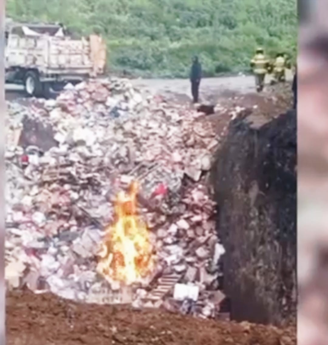 Dijo que primero fumigan la bodega, posteriormente con retroexcavadoras trituran y compactan la mercancía, que luego trasladan en camiones de carga al vertedero municipal, en Chiconautla, donde en una fosa realizan la quema controlada para prevenir afectaciones en la salud de la población.