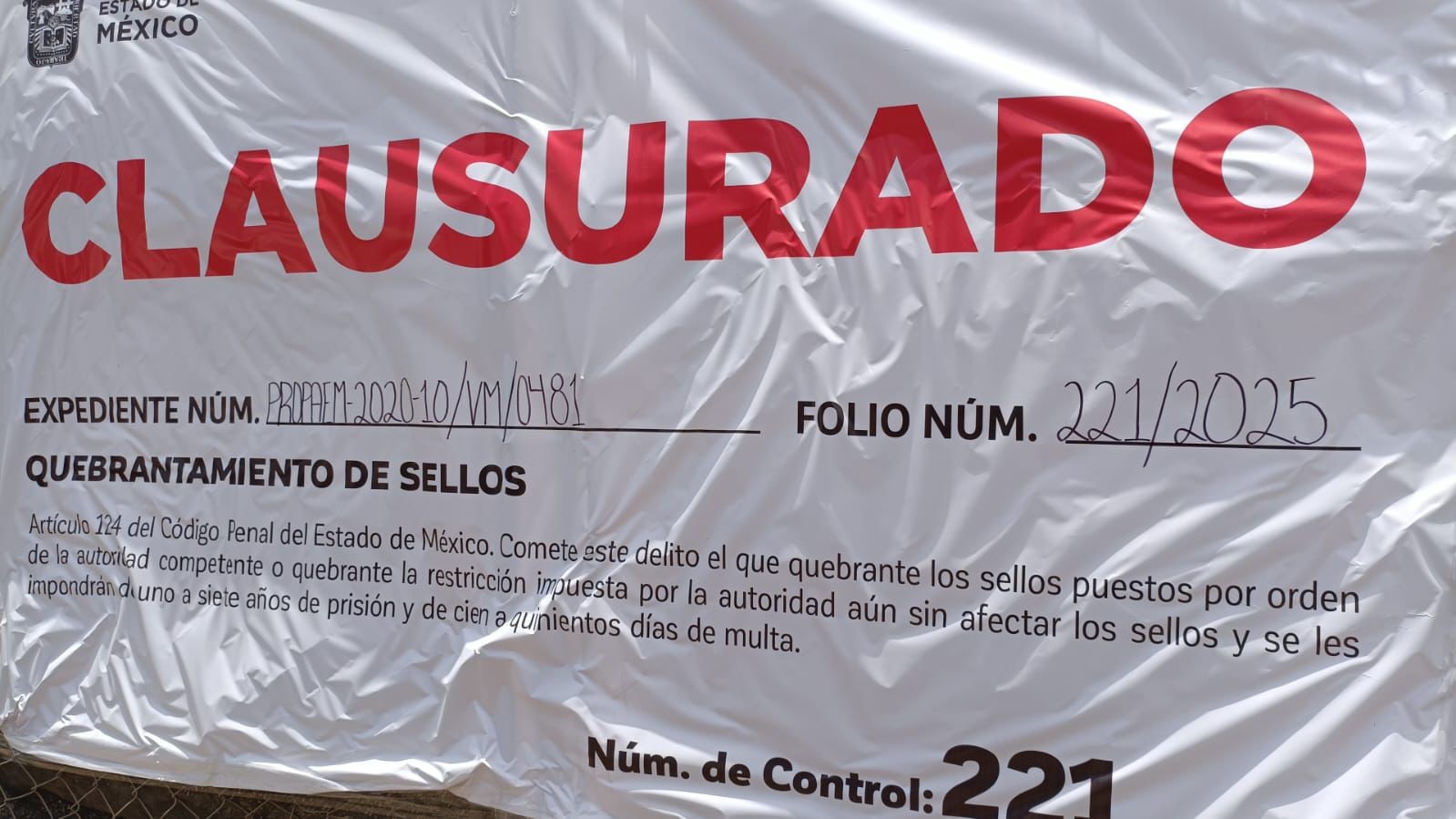 Este espacio, fue cerrado anteriormente dos veces por la PROPAEM y la Fiscalía estatal. Por lo que este 05 de junio realizaron la colocación de tres sellos de clausura: