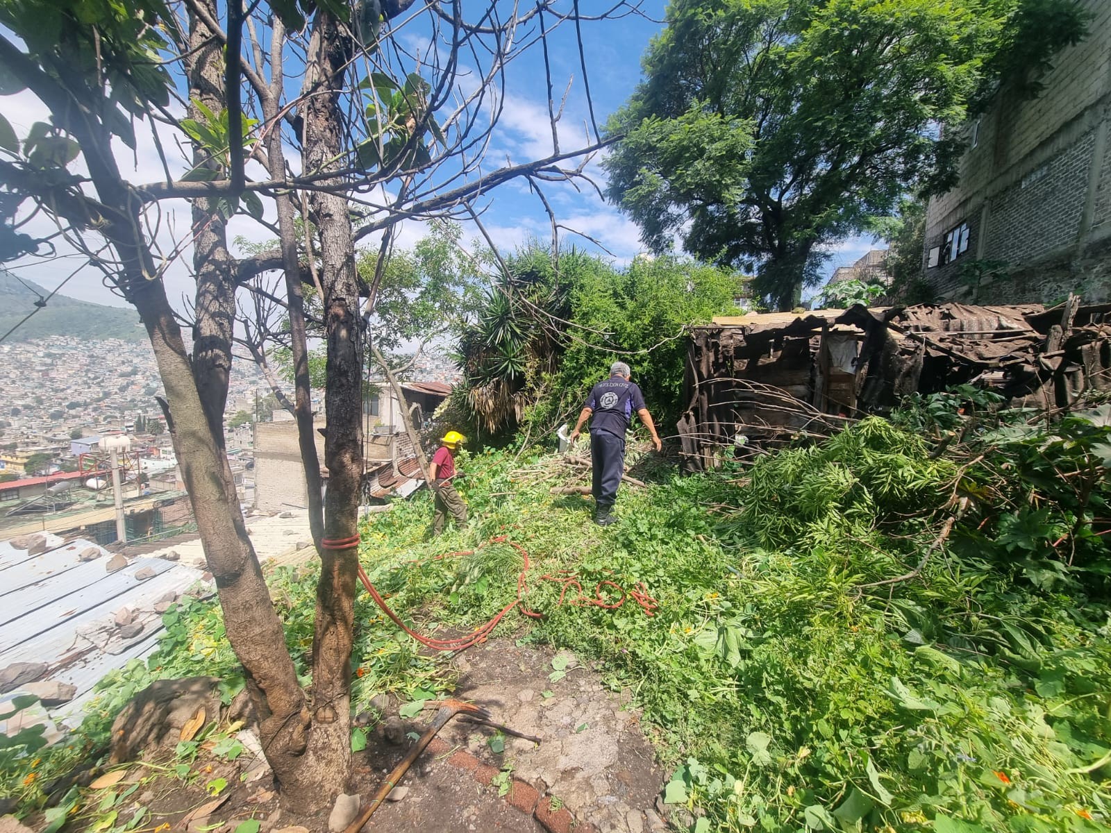 Tras la evaluación, se determinó que las intensas lluvias de los últimos días, aunado a la construcción que tiene falta de recursos y materiales, se generó el deslave de la barda que es parte de la vivienda.