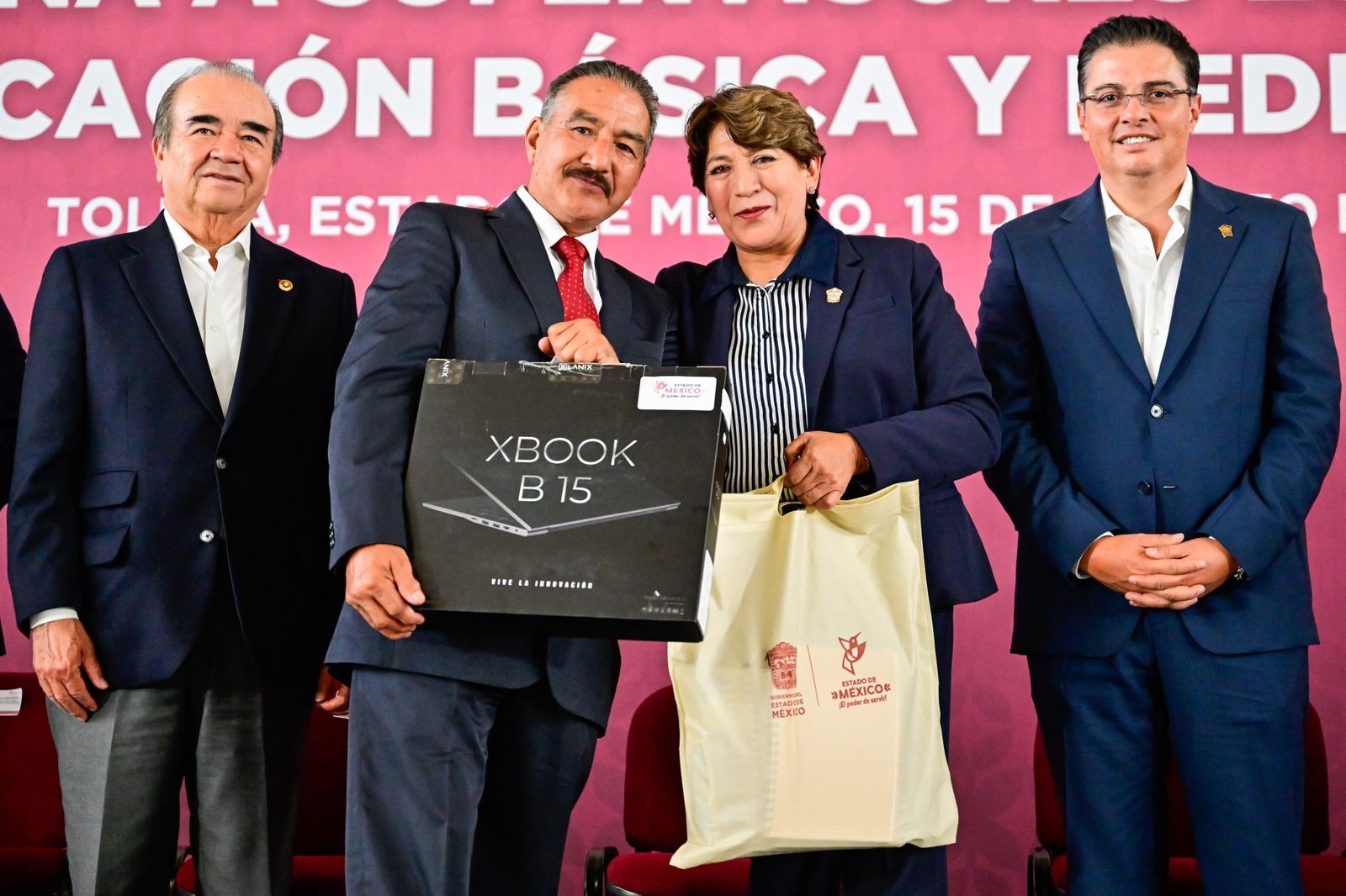 «Me da gusto venir a poner un granito de arena con esta entrega de equipo que, como les decía, todavía resulta insuficiente. Claro que aún tenemos más retos, pero estén seguros de que lo que hoy entregamos es con la mejor intención de mejorar la prestación de servicios como supervisores escolares», indicó la Gobernadora Delfina Gómez Álvarez.