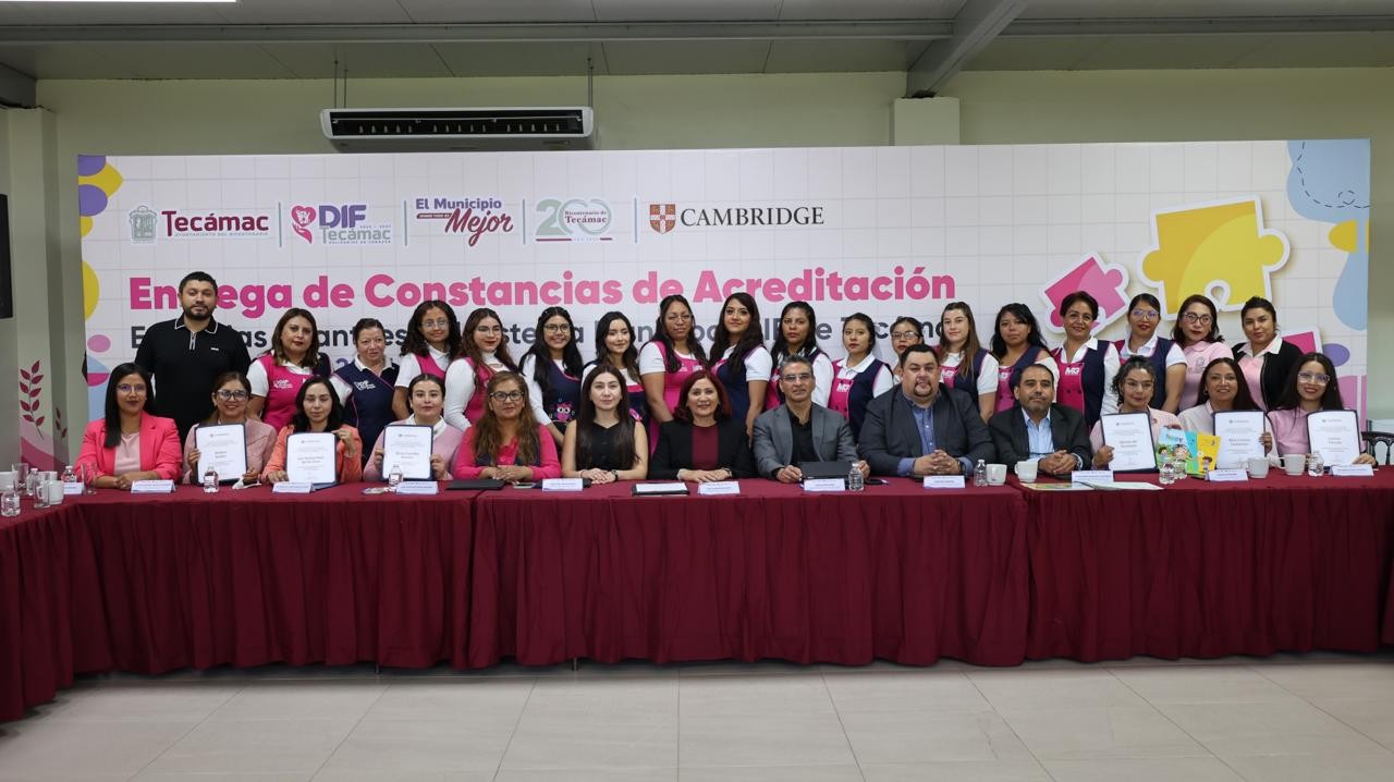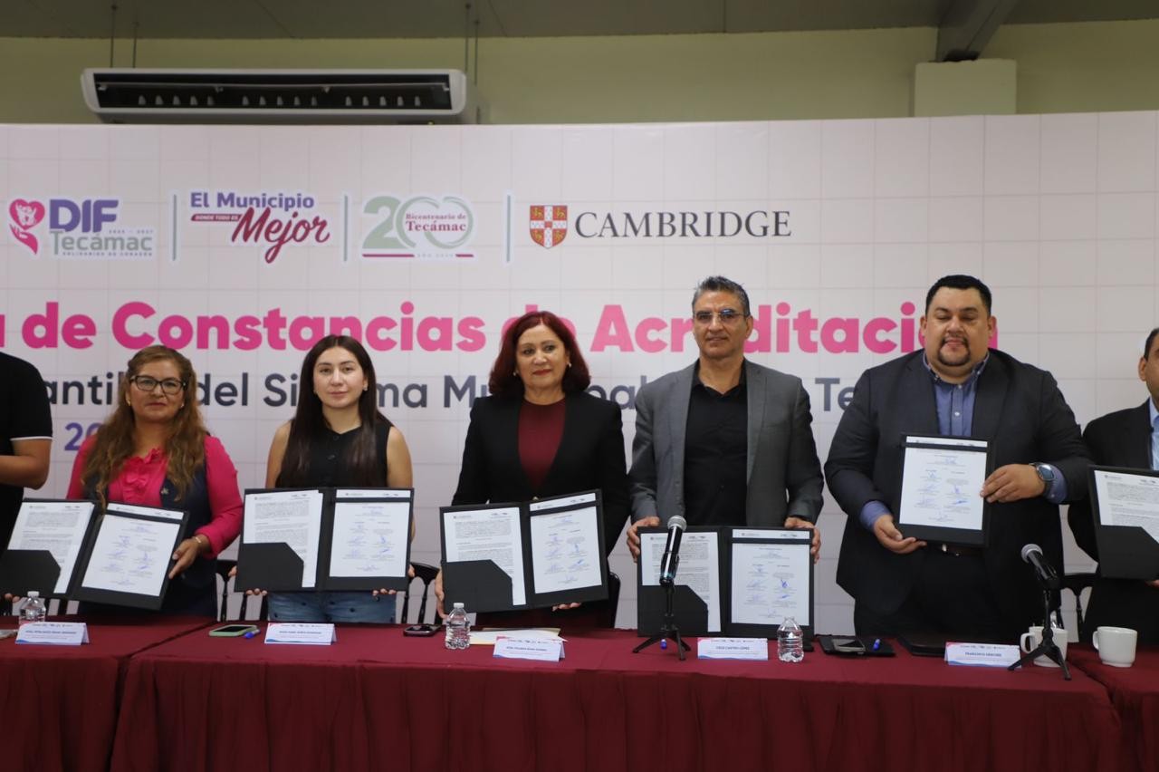 El Gobierno de Tecámac y Cambridge firmaron un convenio de colaboración para la entrega de constancias de acreditación en la impartición del idioma inglés en las estancias infantiles del Sistema Municipal del Desarrollo Integral para la Familia (DIF).