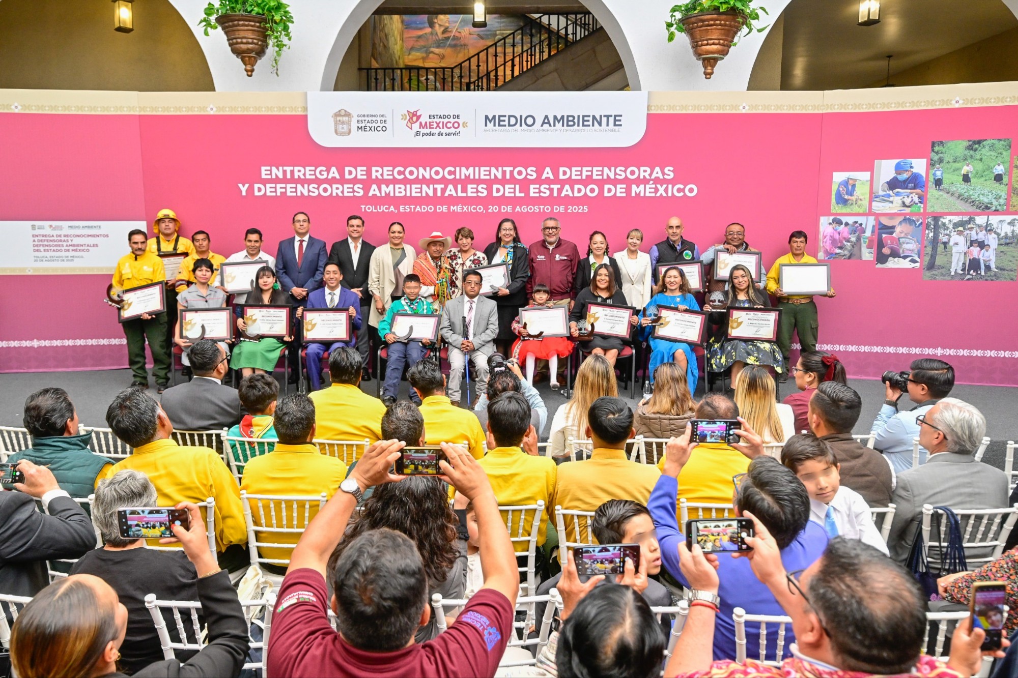 La Gobernadora Delfina Gómez Álvarez encabezó la primera Entrega de Reconocimientos a Defensoras y Defensores Ambientales del Estado de México, iniciativa que reconoce el compromiso de ciudadanas y ciudadanos que, con esfuerzo y amor por la naturaleza, protegen los bosques, restauran ecosistemas y defienden a la flora, la fauna y a los seres sintientes.