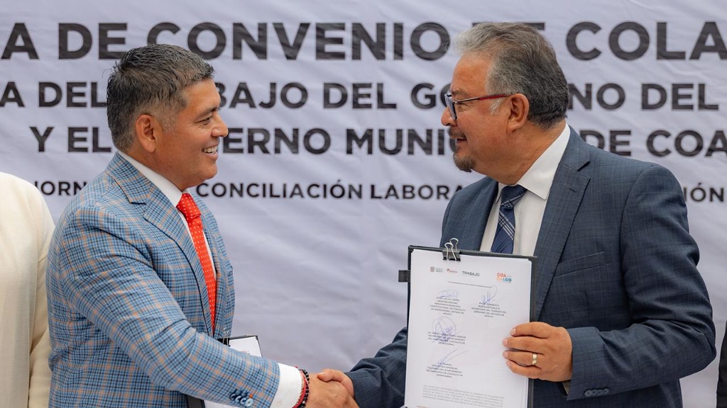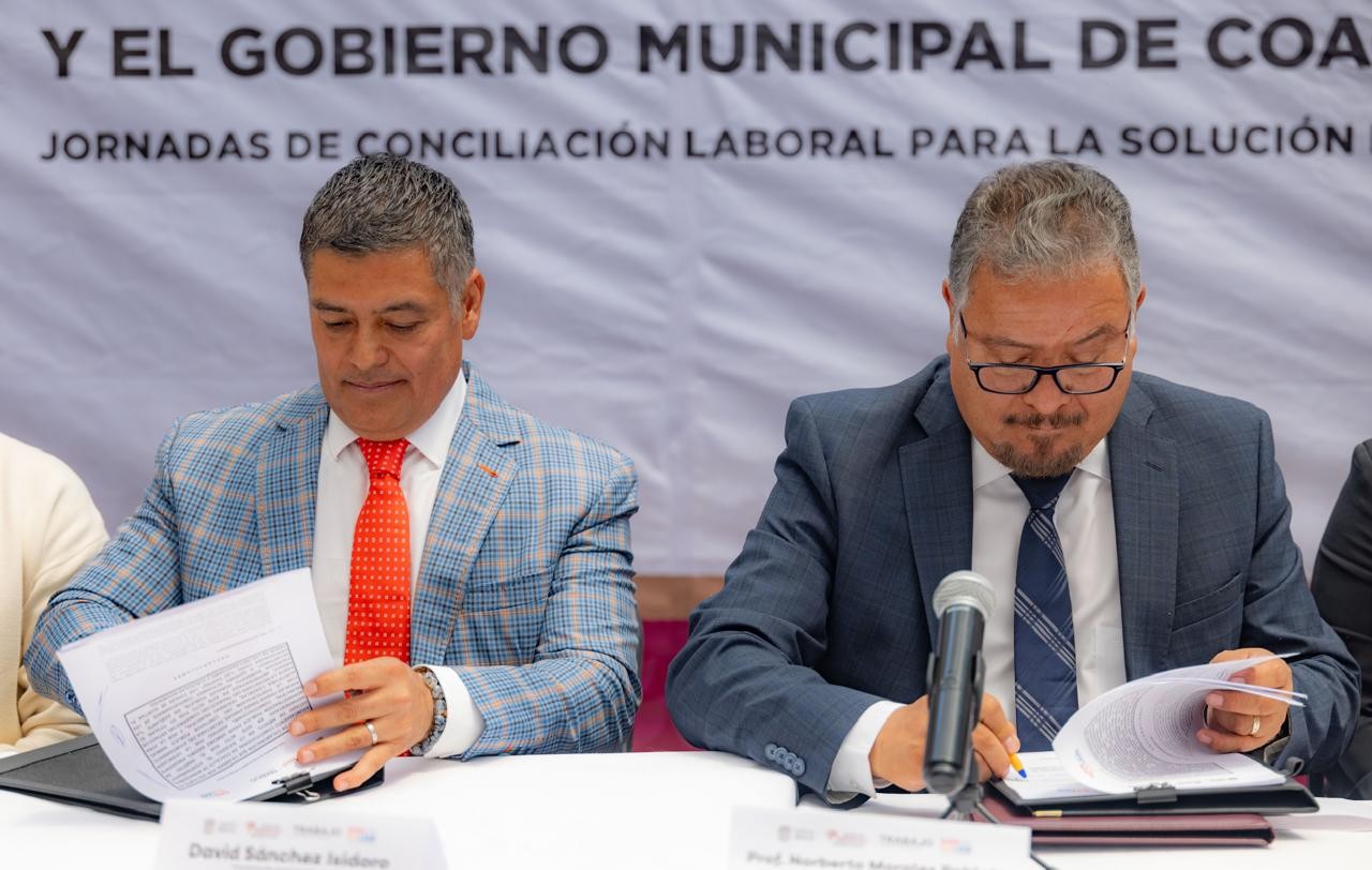 El presidente municipal de Coacalco, David Sánchez Isidoro, se reunió con el secretario del Trabajo del Estado de México, Norberto Morales Poblete, para la firma de un convenio de colaboración que tiene como propósito coordinar y llevar a cabo jornadas de conciliación laboral para la solución de laudos.