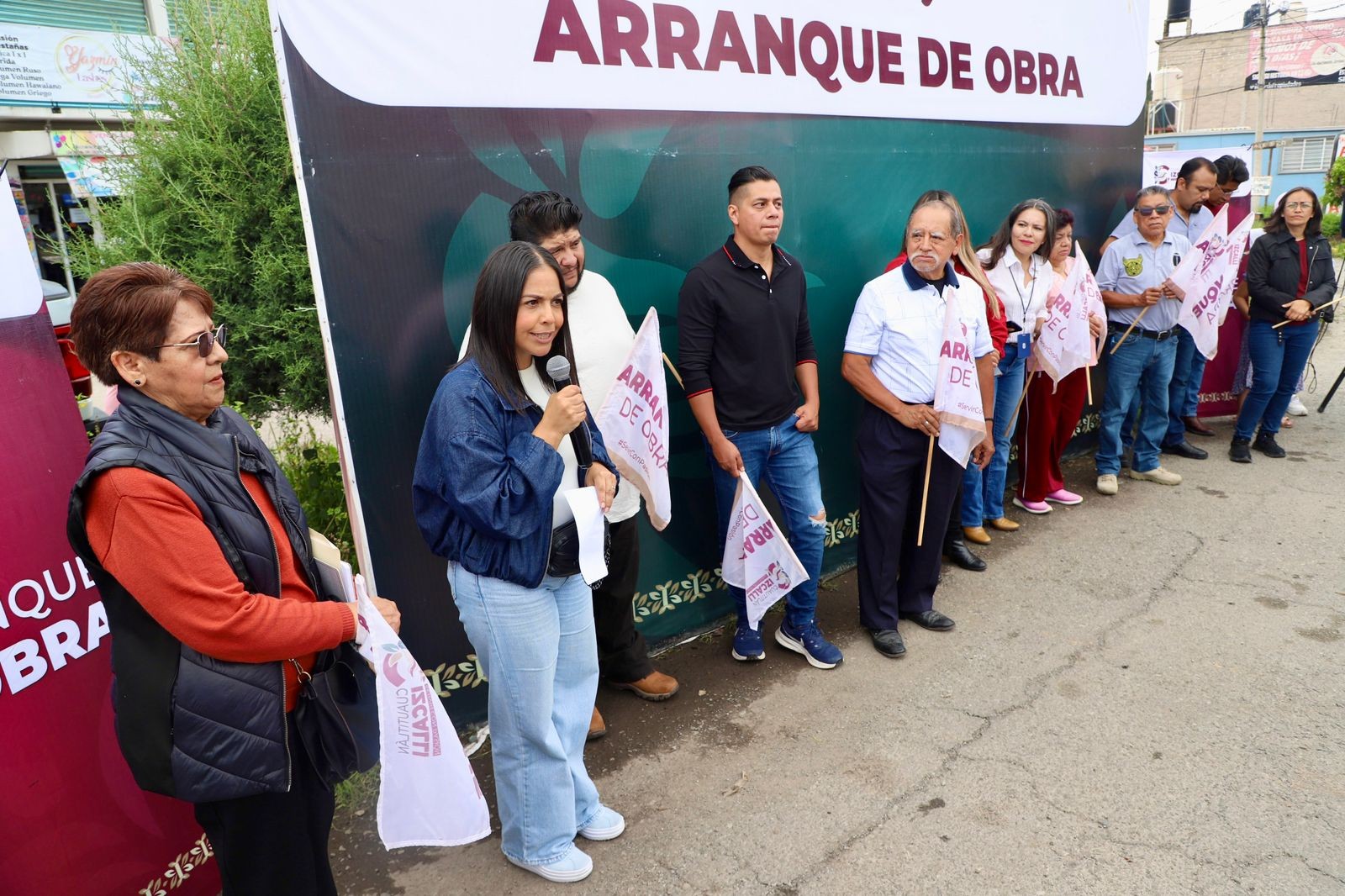 Representando al alcalde Serrano, la secretaria del Ayuntamiento, Ivonne Blanco Calderón, junto con la primera síndica Mary Barboza y la directora de Desarrollo Urbano e Infraestructura, Verónica Italia Montero, encabezaron el banderazo de arranque de la obra.