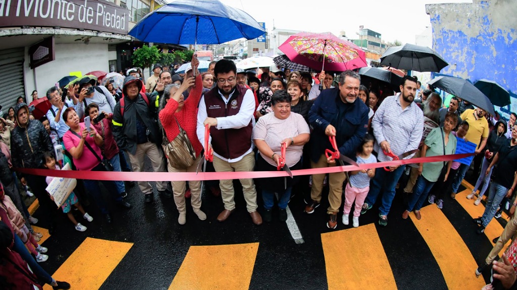 A pesar de la lluvia, las y los vecinos acompañaron al alcalde al corte de listón, ante quienes apuntó que “ni la lluvia ni el viento detengan el movimiento”. Con esta calle se entrega una obra más de rehabilitación de las que se están haciendo en todo el municipio, dijo Montoya Márquez.