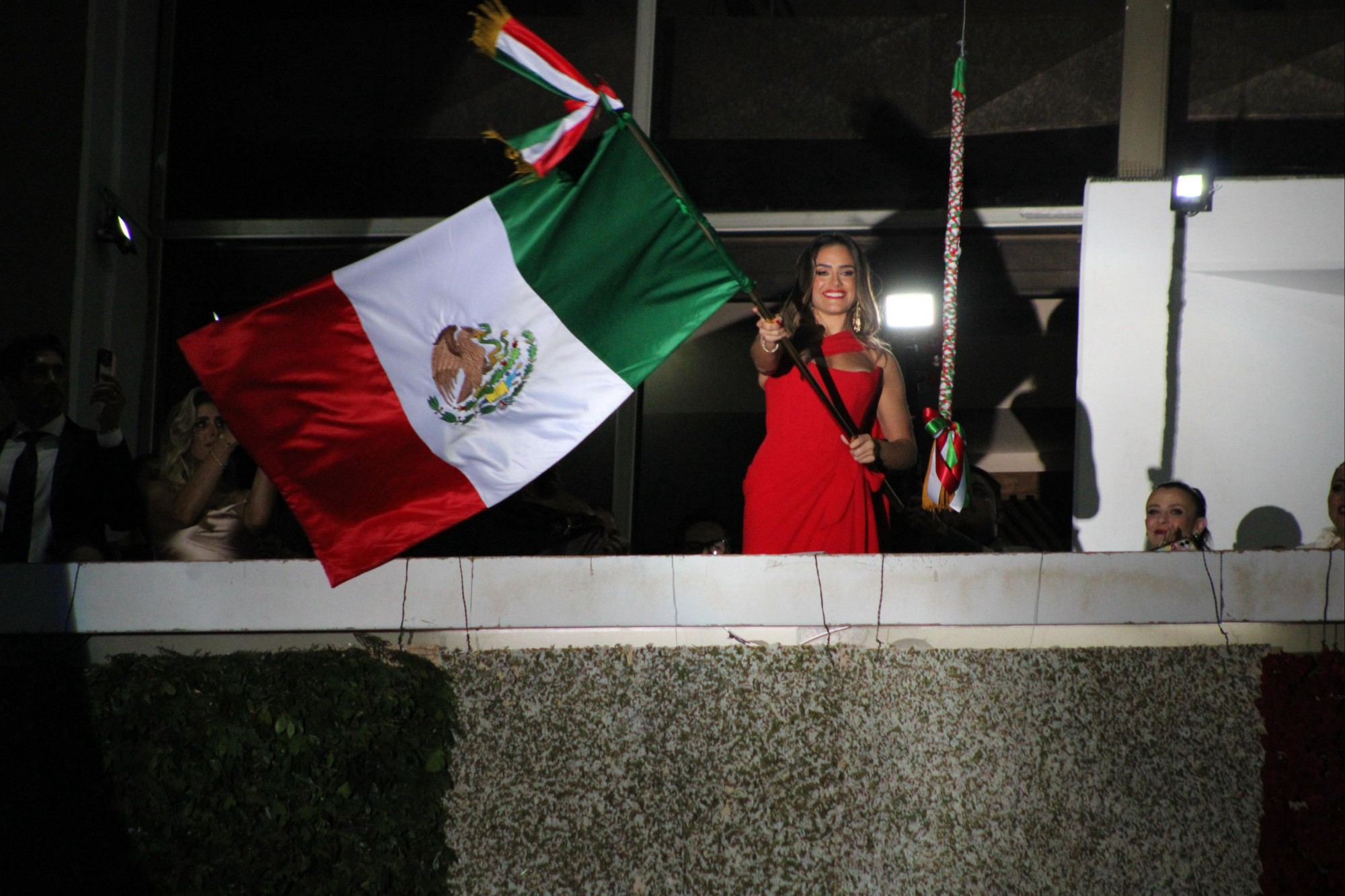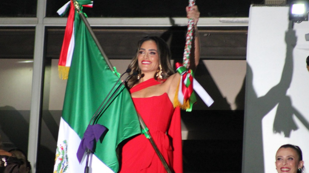 En punto de las 10:50 de la noche, la alcaldesa Alessandra Rojo de la Vega recibió el Lábaro Patrio de manos de una escolta femenina integrada por jóvenes estudiantes que dieron solemnidad al protocolo. Acto seguido, caminó hacia el balcón central de la sede de gobierno, donde la esperaban más de 10 mil personas entre aplausos, banderas ondeando y el ánimo desbordado en la explanada de la Cuauhtémoc.