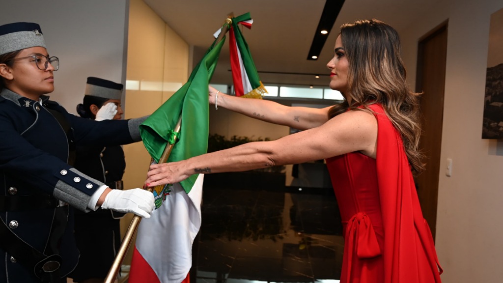 La jornada inició desde la tarde con la verbena gratuita, organizada con la participación de locatarias y locatarios de los mercados de la demarcación. En punto de las 10:50 de la noche, la escolta y banda de guerra de la escuela Pentathlón Deportivo Militarizado Universitario, integrada por jóvenes estudiantes, entregó la Bandera Nacional a la alcaldesa, quien se dirigió al balcón central para lanzar la arenga conmemorativa.