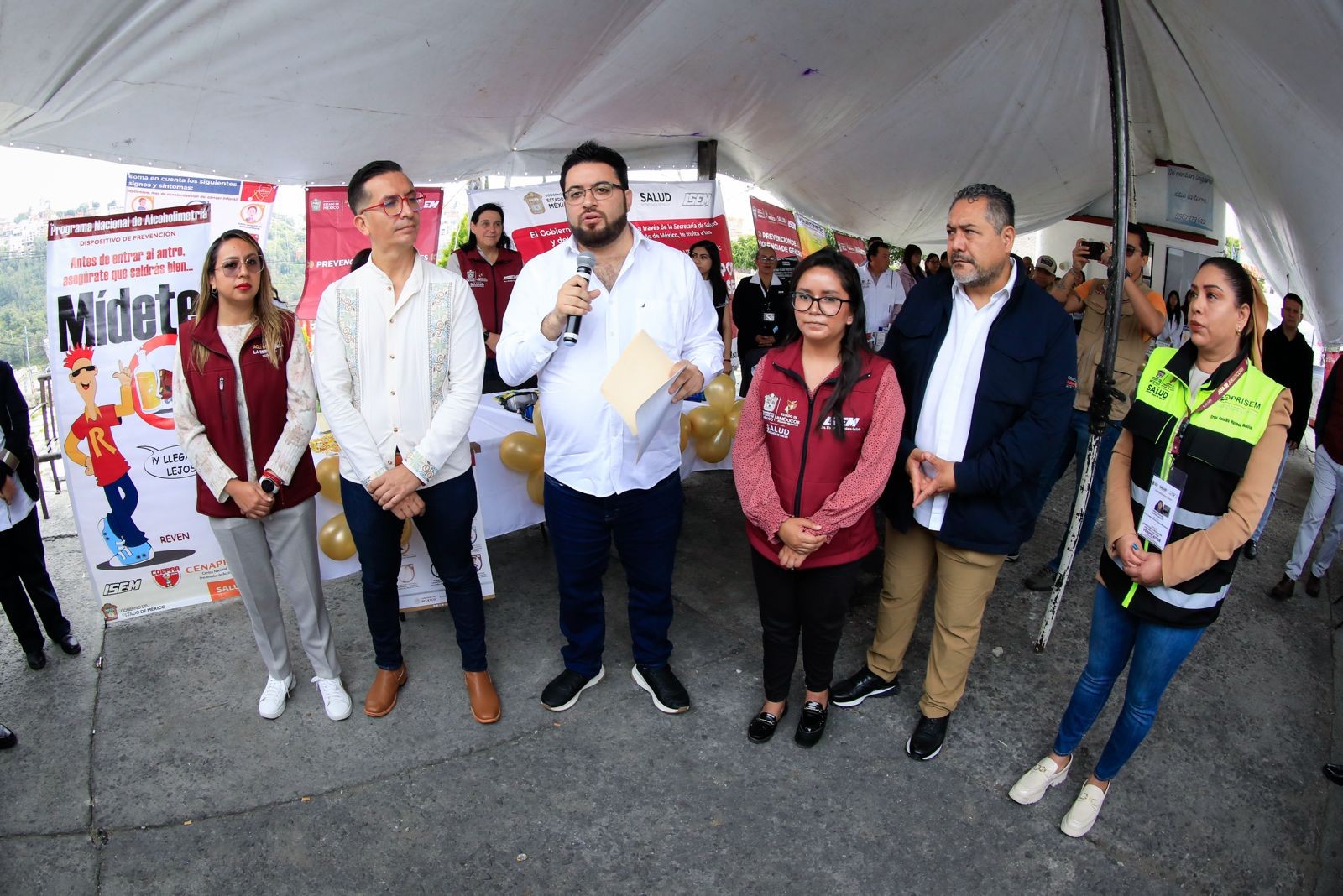 En presencia del diputado federal, Alejandro Peña y diputado local Israel Espíndola, de la Jefa de Jurisdicción Sanitaria de Naucalpan, Iris Santillán, de la Jefa de Jurisdicción de Regulación Sanitaria, Érika Huitrón Gualito, agradeció la participación de todo el personal médico del ISEM y de la Jurisdicción Sanitaria por ponerse al servicio de la comunidad.