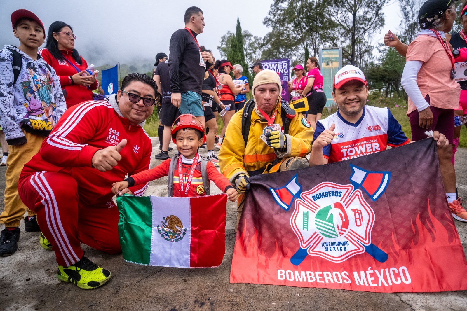 En un emotivo acto de compañerismo, los competidores se animaban mutuamente al cruzar la meta. Uno de los momentos más significativos fue protagonizado por un bombero del Estado de México, quien completó el recorrido portando su equipo de trabajo. Al llegar, lo esperaba su familia con entusiasmo y orgullo.