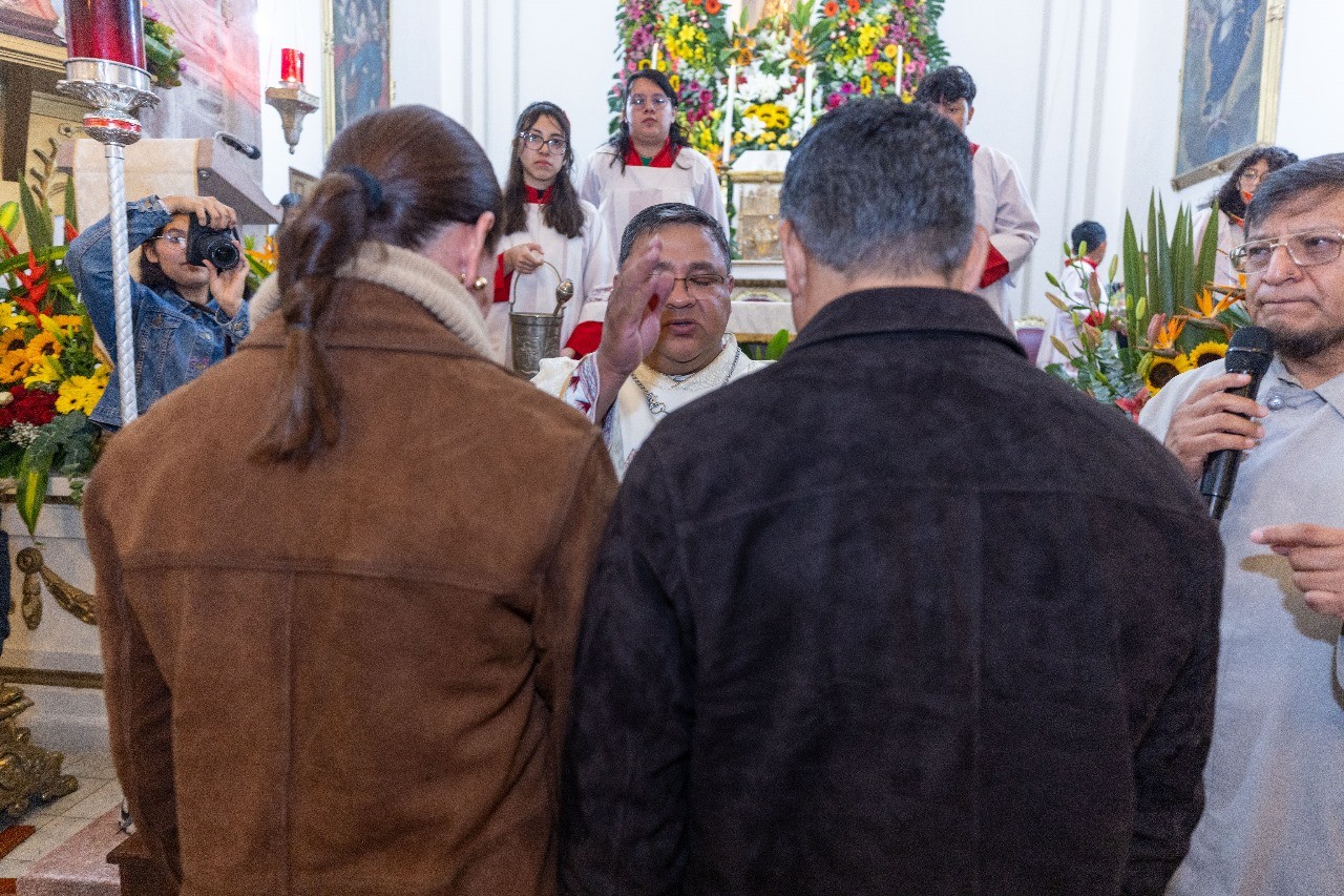 Durante la misa, el sacerdote bendijo al presidente municipal, David Sánchez Isidoro, y a su esposa, María de Lourdes González Ocampo, deseándoles bienestar y recordando que, cuando a los gobernantes les va bien, la comunidad también se fortalece. En su mensaje, el padre Paulo subrayó la corresponsabilidad de todos para vivir en comunión, con tranquilidad y en paz, contribuyendo así al bien común.