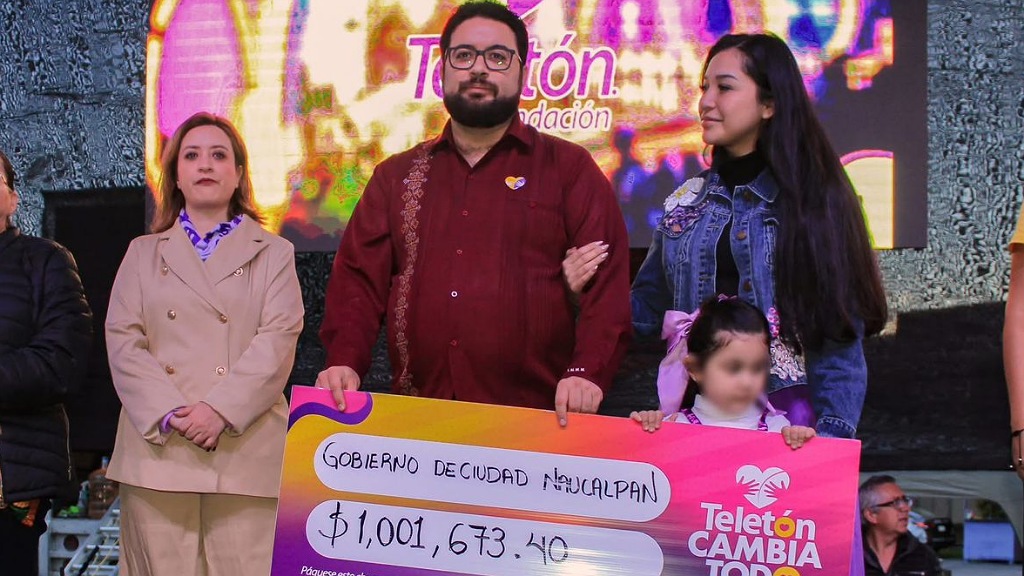 Tras el ejercicio de recaudación y la entrega de 300 alcancías al CRIT Estado de México —que colocó a Naucalpan como el municipio con mayor número de “puerquitos” aportados en la entidad—, el alcalde acudió a la ceremonia de clausura para entregar el donativo de 1 millón 1 mil 673.40 pesos, destinados a rehabilitaciones y tratamientos de niñas, niños y jóvenes que reciben terapias en este centro.