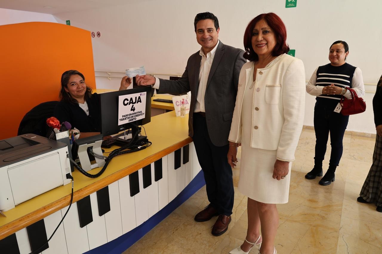 Durante la entrega del cheque del donativo estuvo acompañada por la presidenta y directora general del DIF, Isabel Muñoz, y Rocío Miguel Hernández, respectivamente, así como integrantes del cuerpo edilicio.