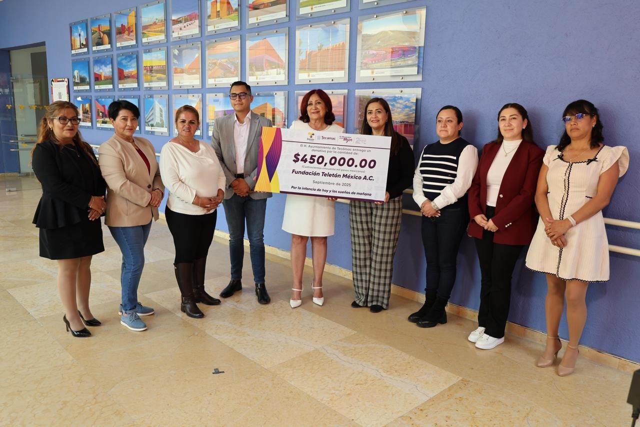 La alcaldesa de Tecámac, Rosi Wong Romero, entregó un donativo a nombre del gobierno municipal a la Fundación Teletón por 450 mil pesos, a fin de contribuir a la atención de niñas y niños con alguna discapacidad.