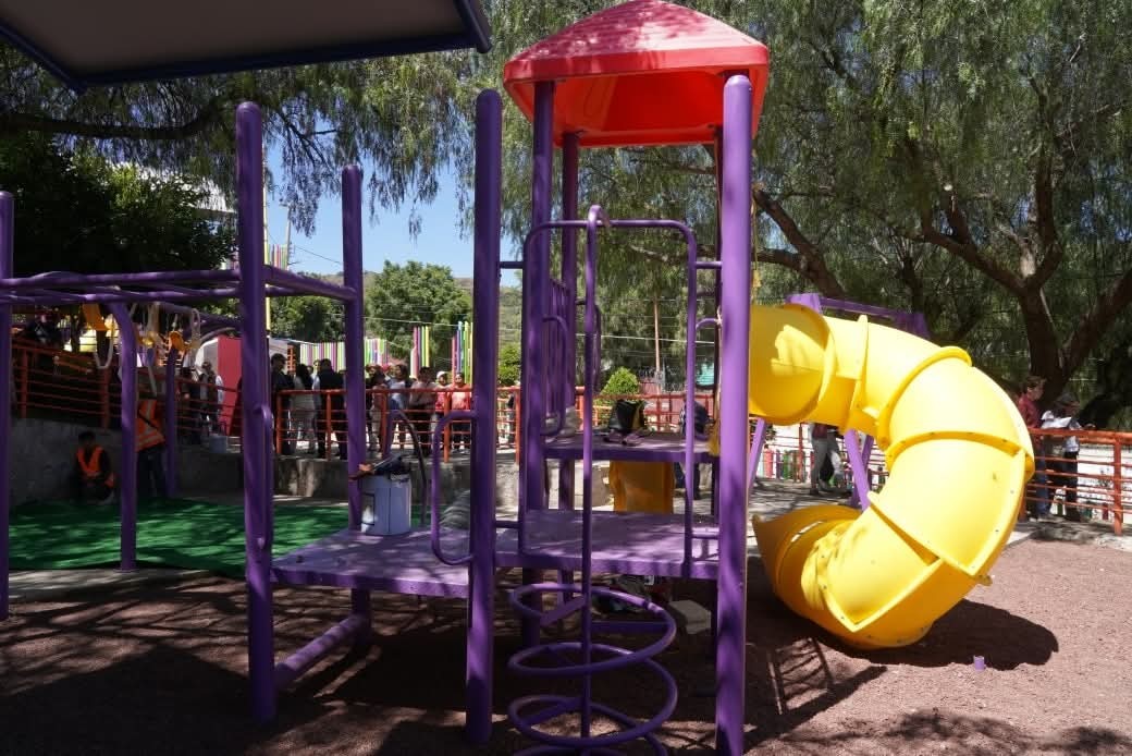 Esta obra comunitaria cuenta con área de juegos infantiles, gimnasio al aire libre, canchas multiusos y otros espacios para acercar actividades, artísticas, culturales y educativas a vecinas y vecinos de esta zona y localidades aledañas.