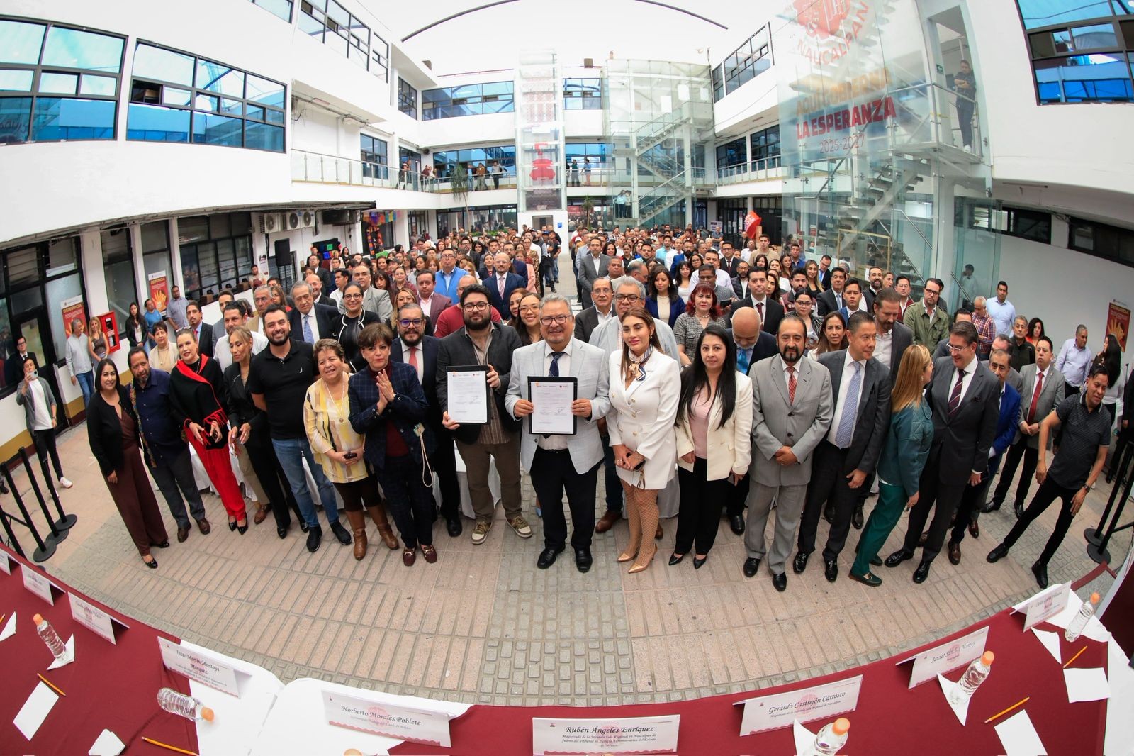 En el patio central del Palacio Municipal, el alcalde enfatizó que este convenio no solamente es un documento administrativo, sino que representa un pacto con respeto a los derechos humanos laborales, a la dignidad de las y los trabajadores y al diálogo, como vía principal para la solución de los conflictos.