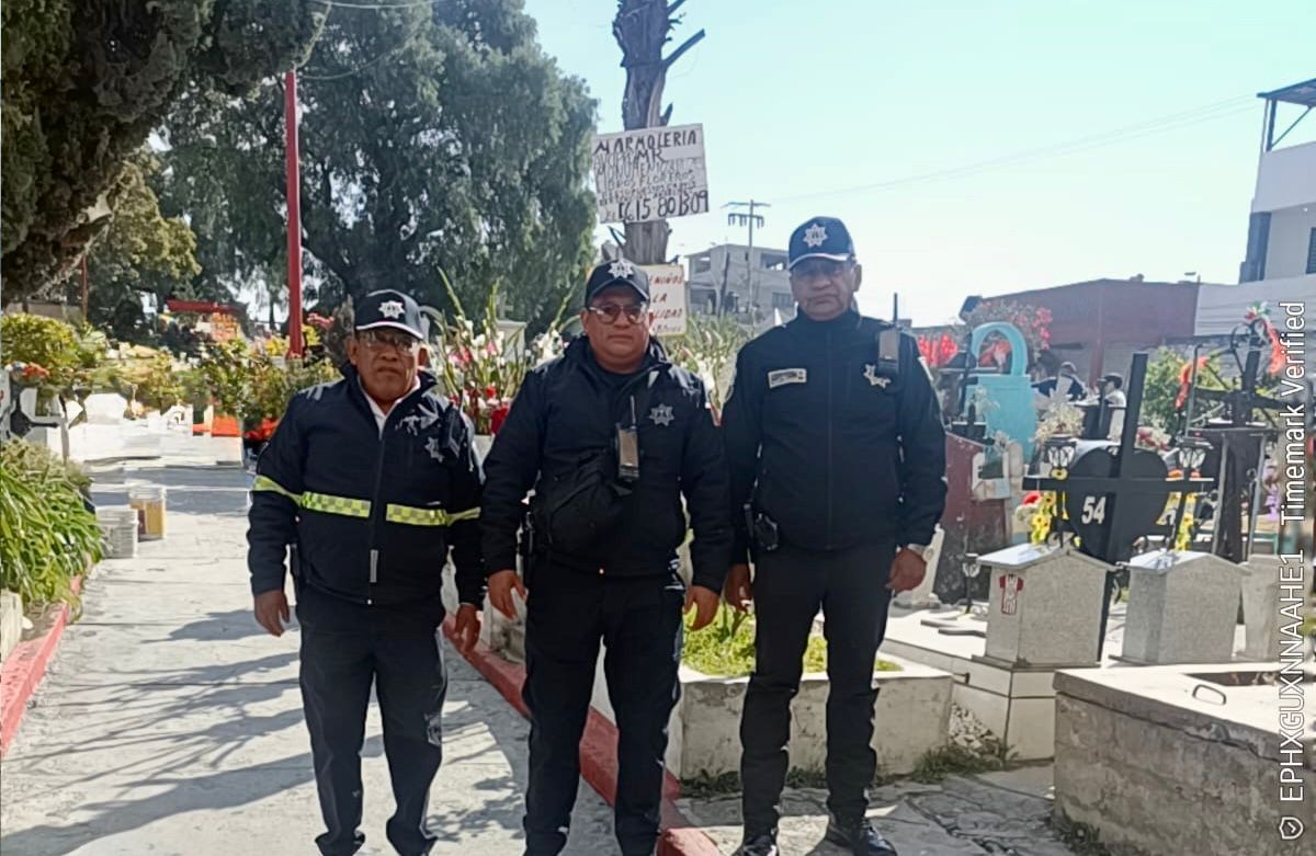 En esta conmemoración, continuará la presencia de los elementos de seguridad, para apoyar a la población en general, en los diversos panteones, seguirán durante la tarde y mañana domingo en el interior y en las inmediaciones de los camposantos, así como patrullajes y vigilancia de seguridad en las comparsas.