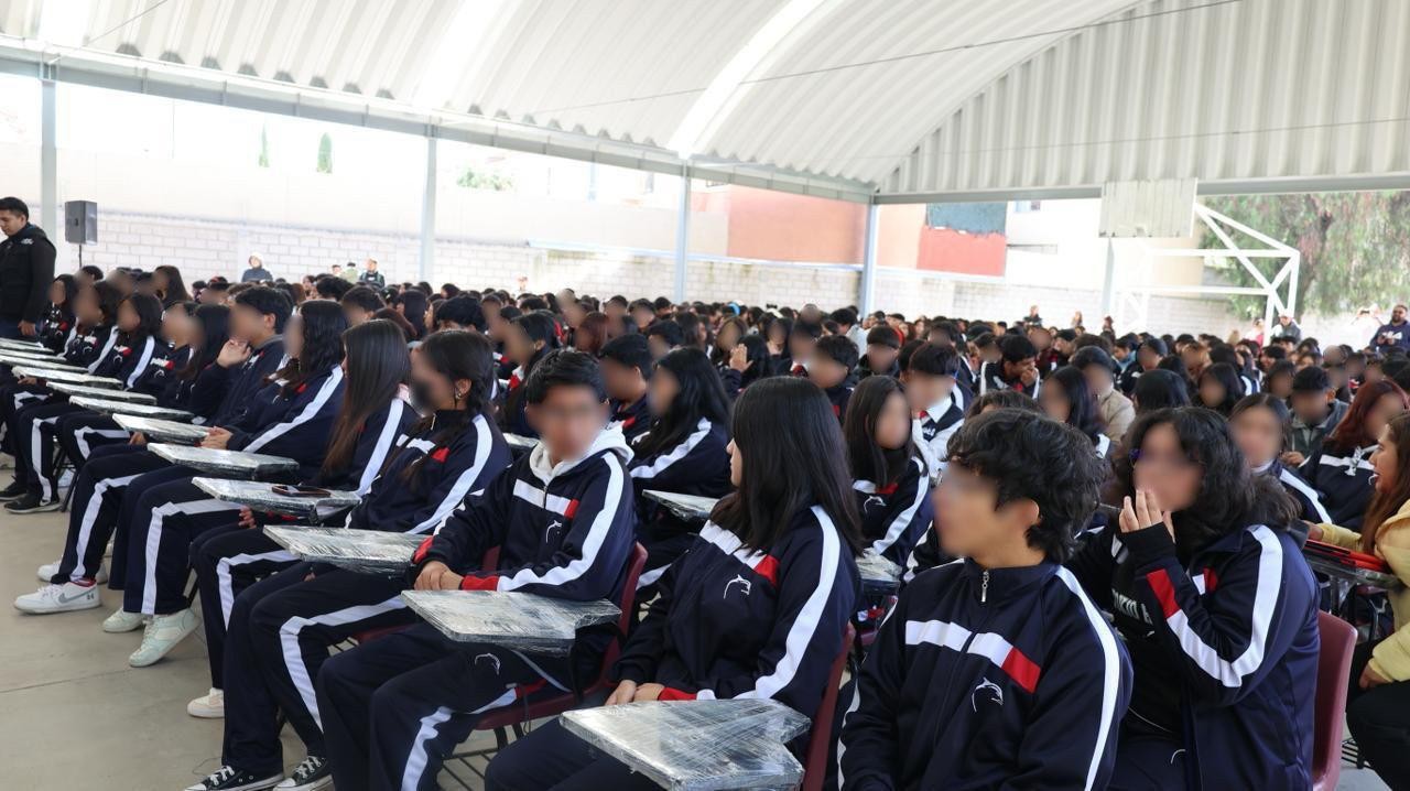 En el acto estuvieron presentes, la presidenta de DIF Tecámac, María Isabel Muñoz Rodríguez, la directora del plantel, Susana Badillo, personal docente y administrativo, así como integrantes del Cabildo, directivos y padres de familia.