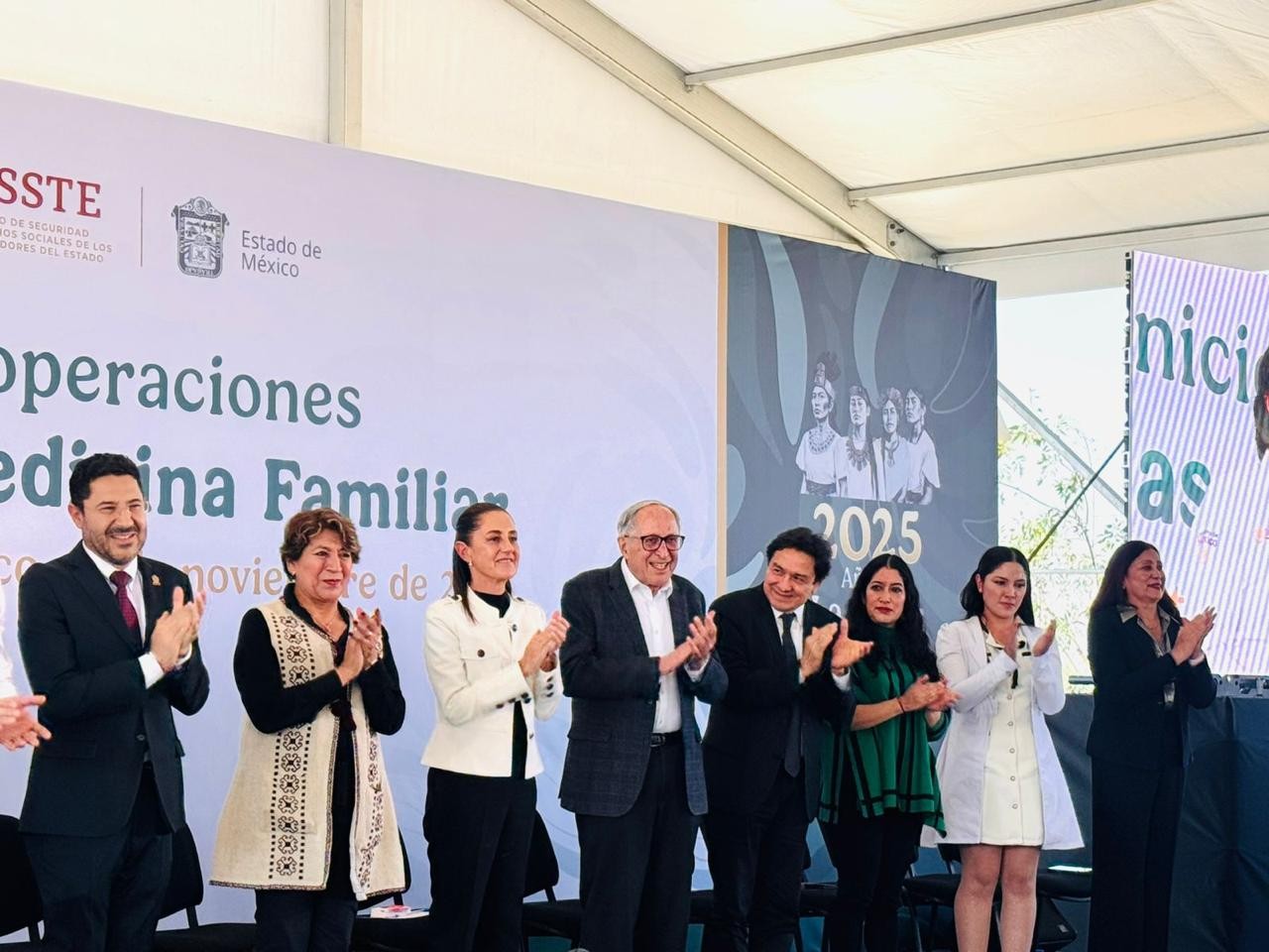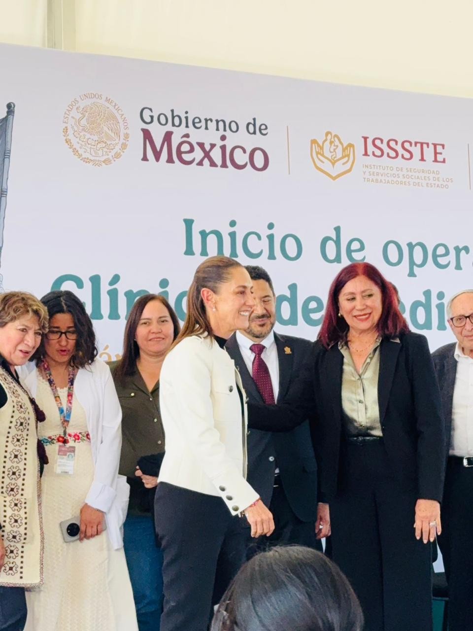 Acompañada por la gobernadora del Estado de México, Delfina Gómez Álvarez ; del secretario de Salud, David David Kershenobich, y del director del Instituto de Seguridad y Servicios Sociales de los Trabajadores del Estado (ISSSTE), entre otros, subrayó que se impulsa un sistema más justo y equitativo en materia de salud.
