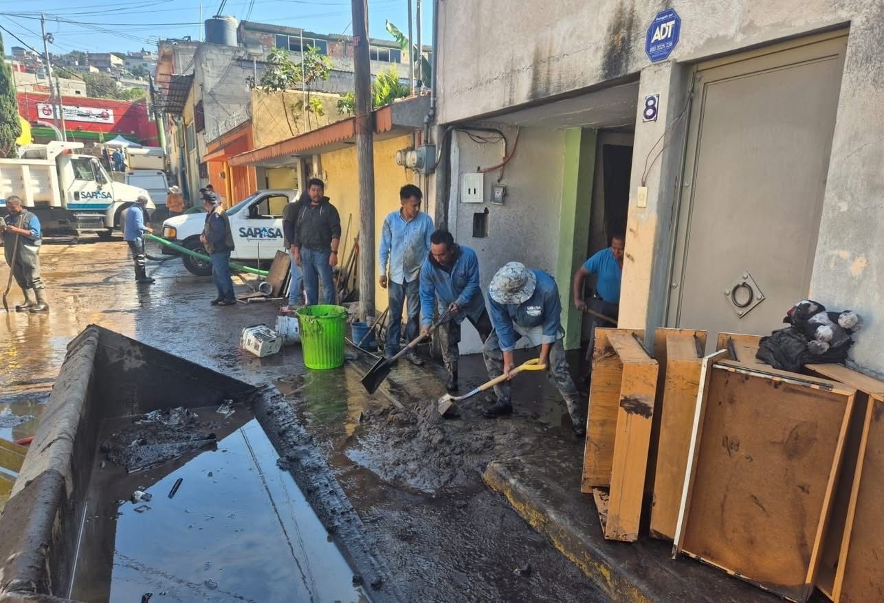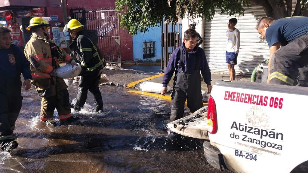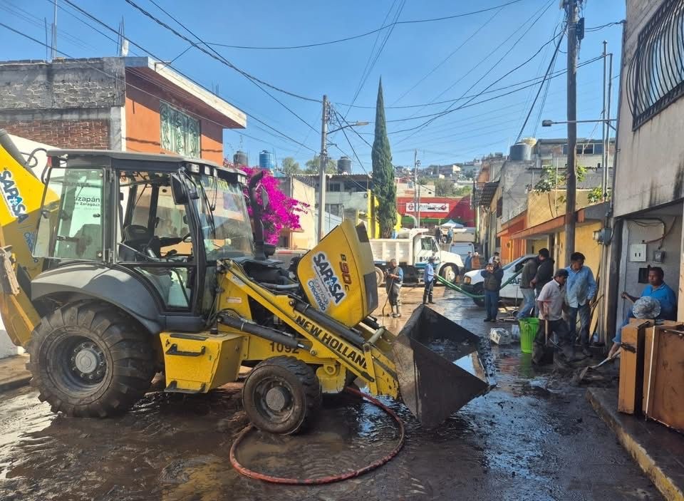 El Gobierno de Atizapán de Zaragoza, a través de distintas dependencias municipales y del organismo del agua SAPASA, apoyan en las labores de limpieza de calles y en viviendas que se vieron afectadas por una fuga en la línea principal de la Comisión del Agua del Estado de México (CAEM), en avenida De la Manzana, San Miguel Xochimanga.