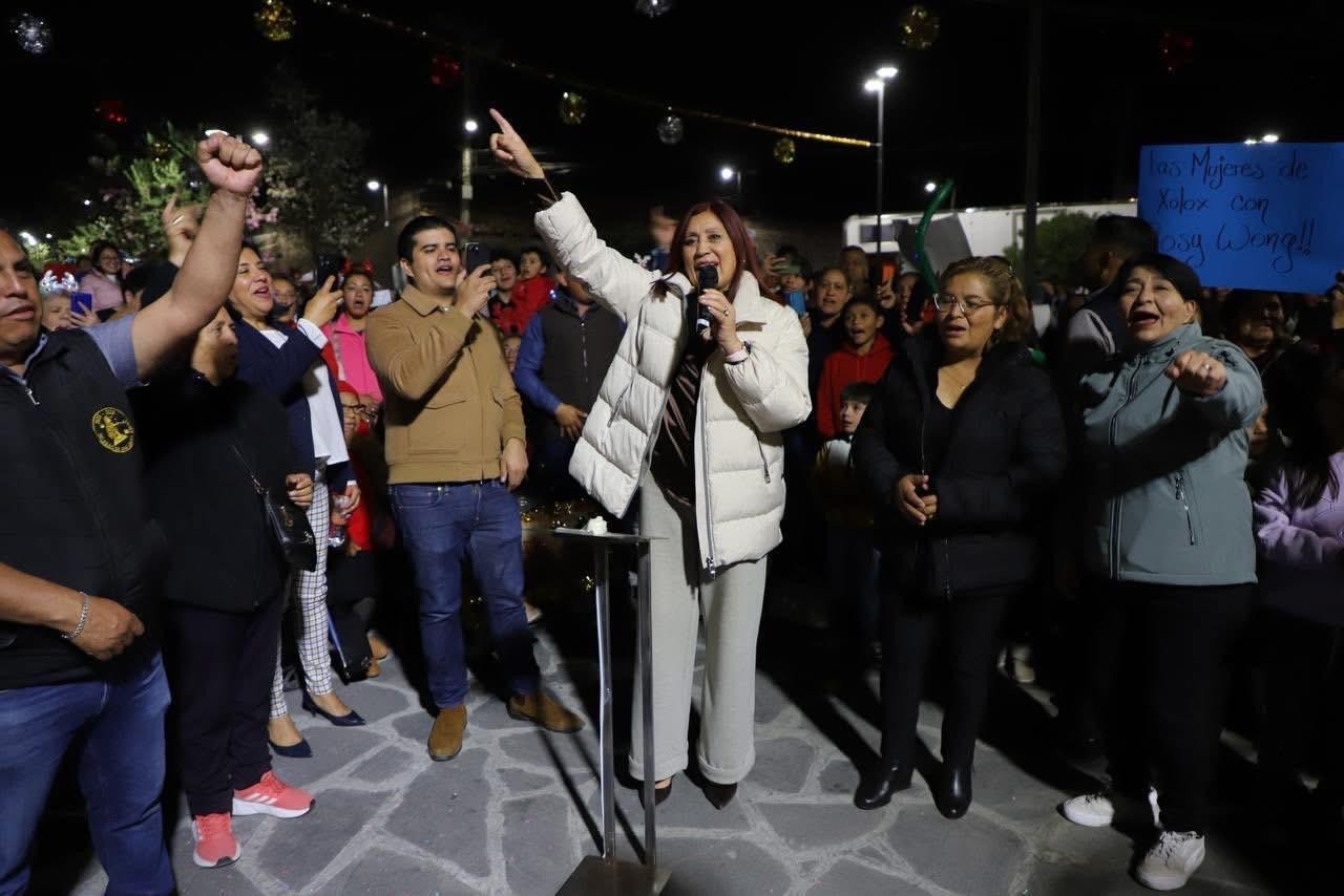 La alcaldesa Rosi Wong Romero encabezó el encendido de luces del árbol de Navidad en la comunidad de San Lucas Xolox, donde dijo que la Navidad es una época para renovar la esperanza, promover la paz y compartir felicidad entre vecinos.