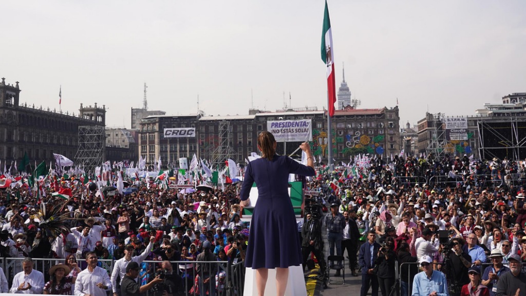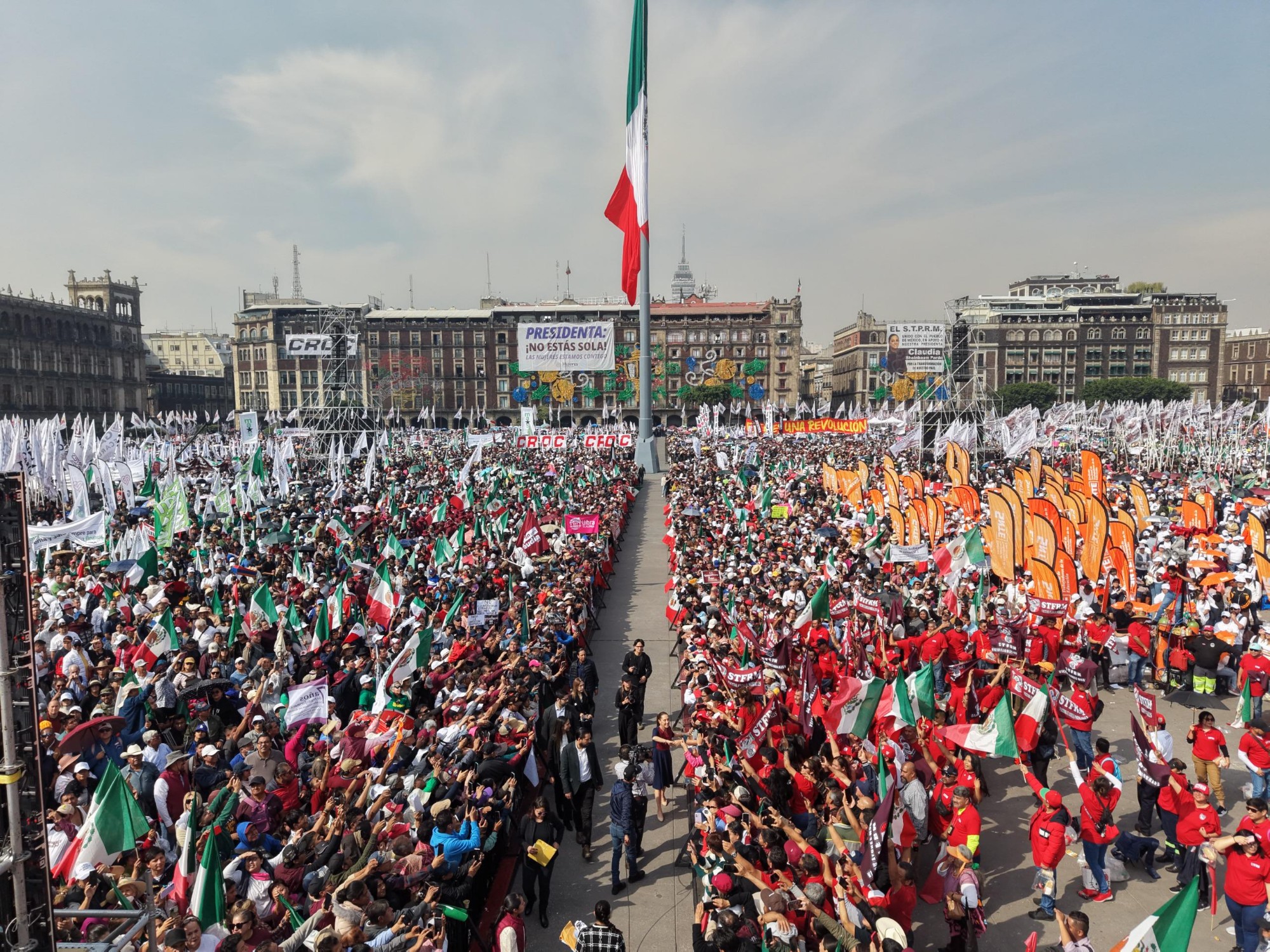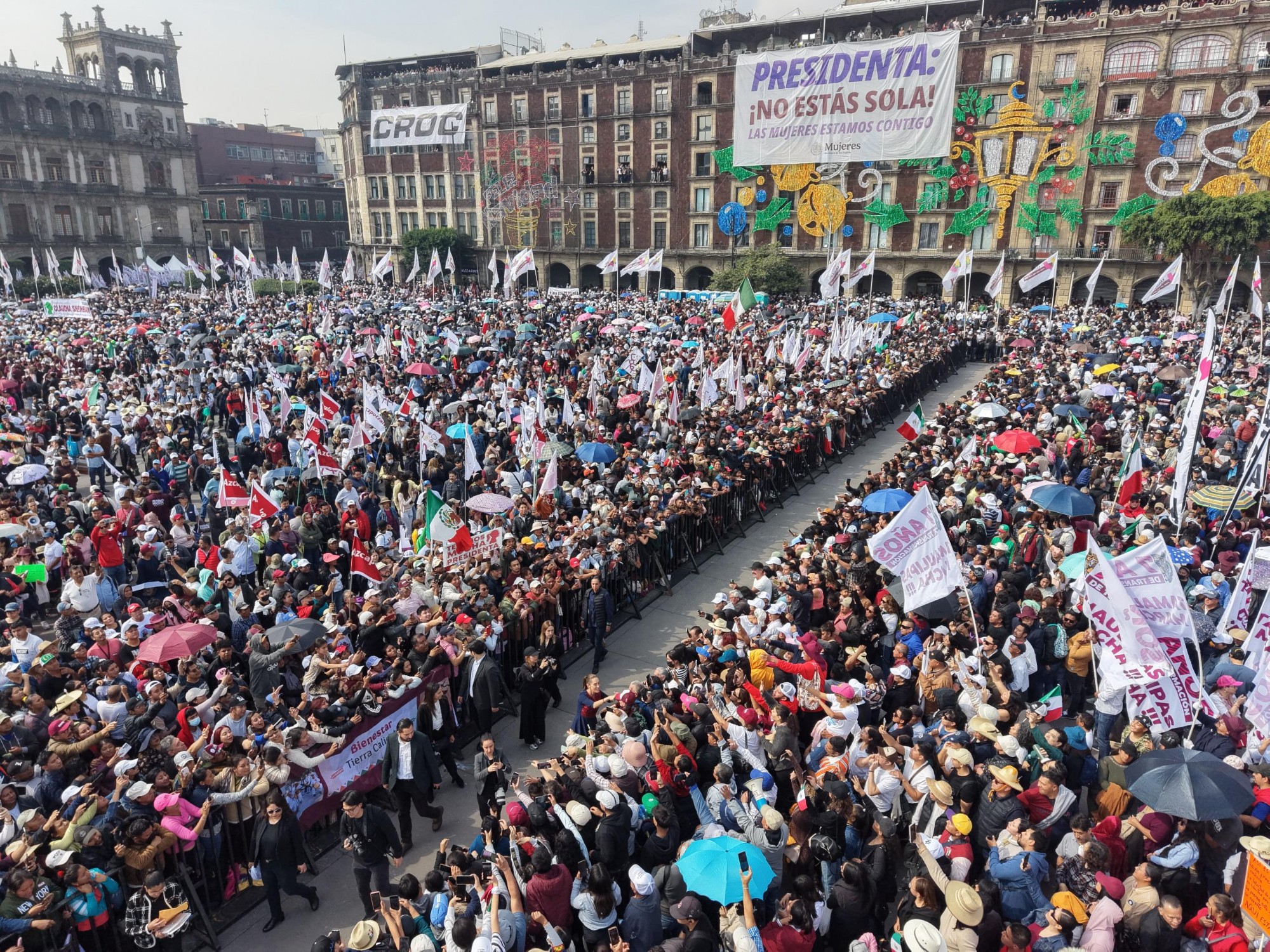 Ante más de 600 mil mexicanas y mexicanos reunidos en el Zócalo de la Ciudad de México, la Presidenta Claudia Sheinbaum Pardo, celebró los 7 años de la llegada de la Cuarta Transformación y puntualizó que por más campañas sucias y alianzas de grupos del conservadurismo nacional e internacional que buscan intervenciones extranjeras, no podrán vencer al pueblo ni a la Jefa del Ejecutivo Federal, ya que el movimiento representa una ruptura con el viejo régimen y una transformación verdadera, económica, social y moral que se guía por el Humanismo Mexicano.