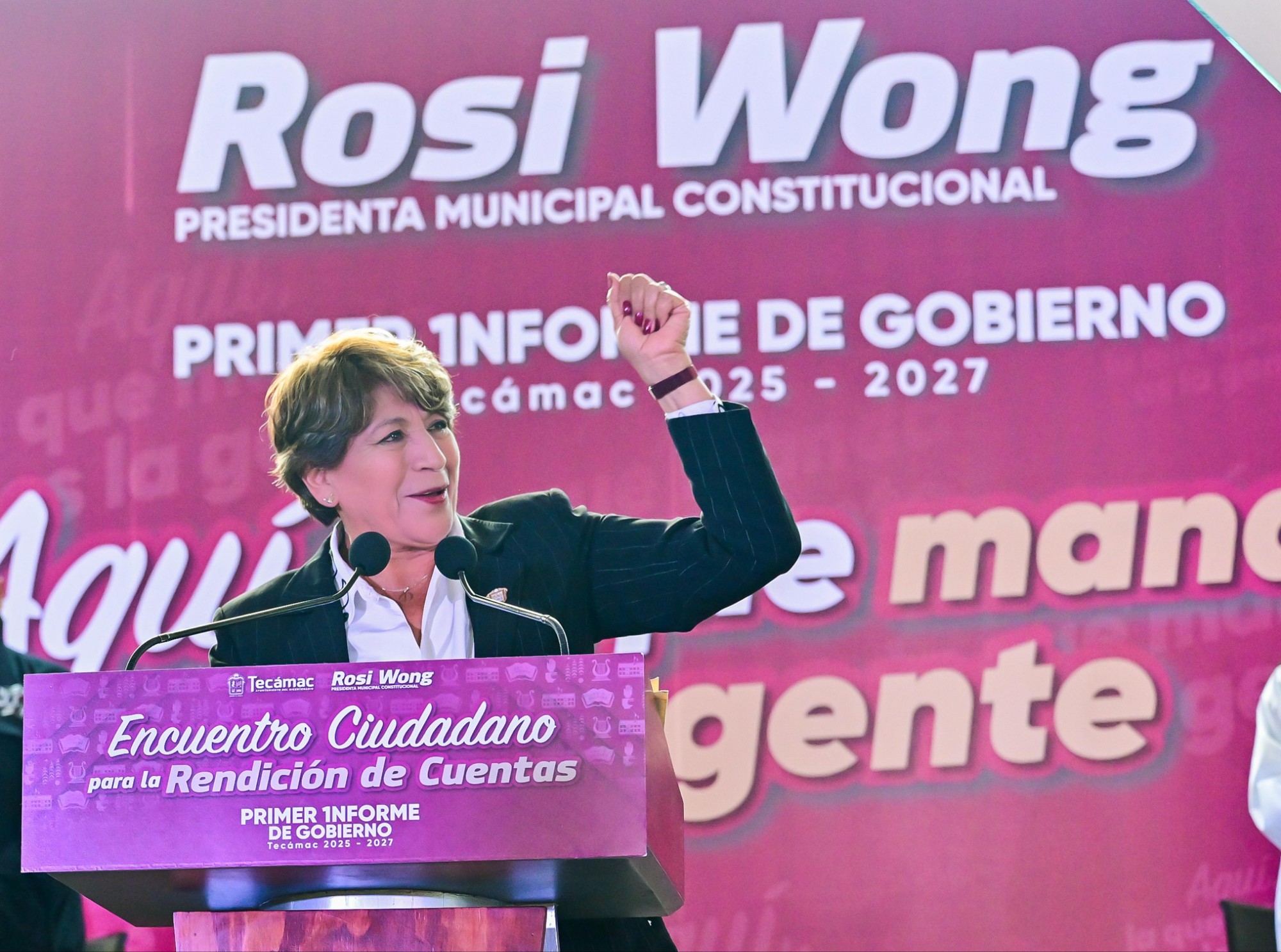 La presidenta municipal Rosi Wong presentó su Primer Informe de Gobierno en Tecámac, acompañada por la gobernadora Delfina Gómez, reiterando su compromiso con las familias tecamaquenses y con la transformación del municipio.