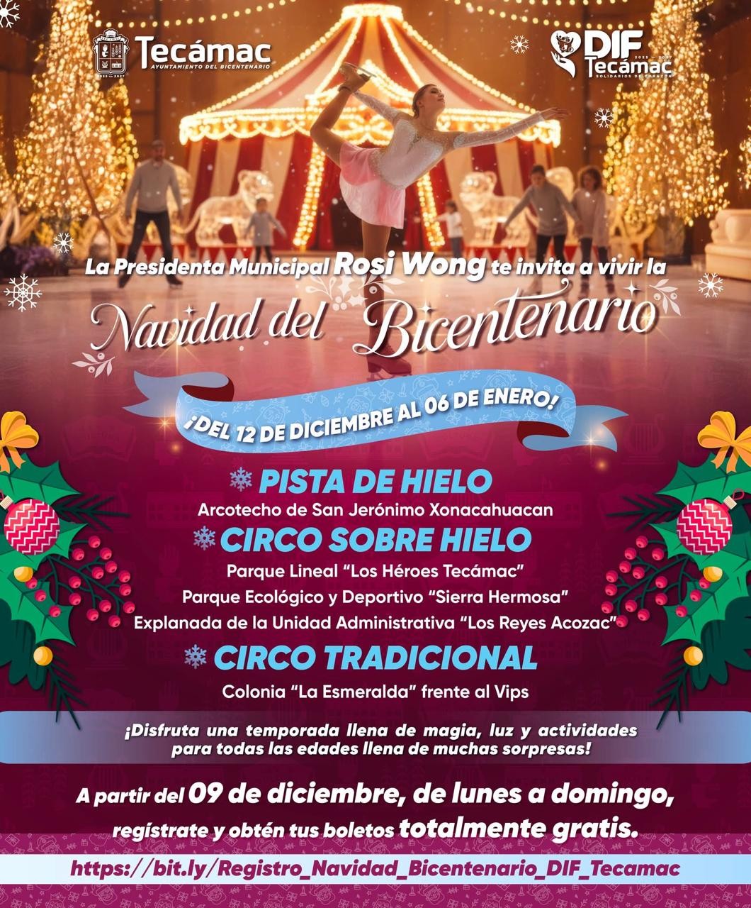 Asimismo, en el Parque Lineal de Los Héroes Tecámac, el Parque Ecológico y Deportivo Sierra Hermosa y la Explanada de la Unidad Administrativa Reyes Acozac se llevarán a cabo espectáculos circenses sobre hielo, que prometen ser un agasajo visual y cultural para chicos y grandes. Se trata de llevar felicidad en estas festividades, donde debe prevalecer la unión de las familias tecamaquenses, del 12 de diciembre al 6 de enero.
