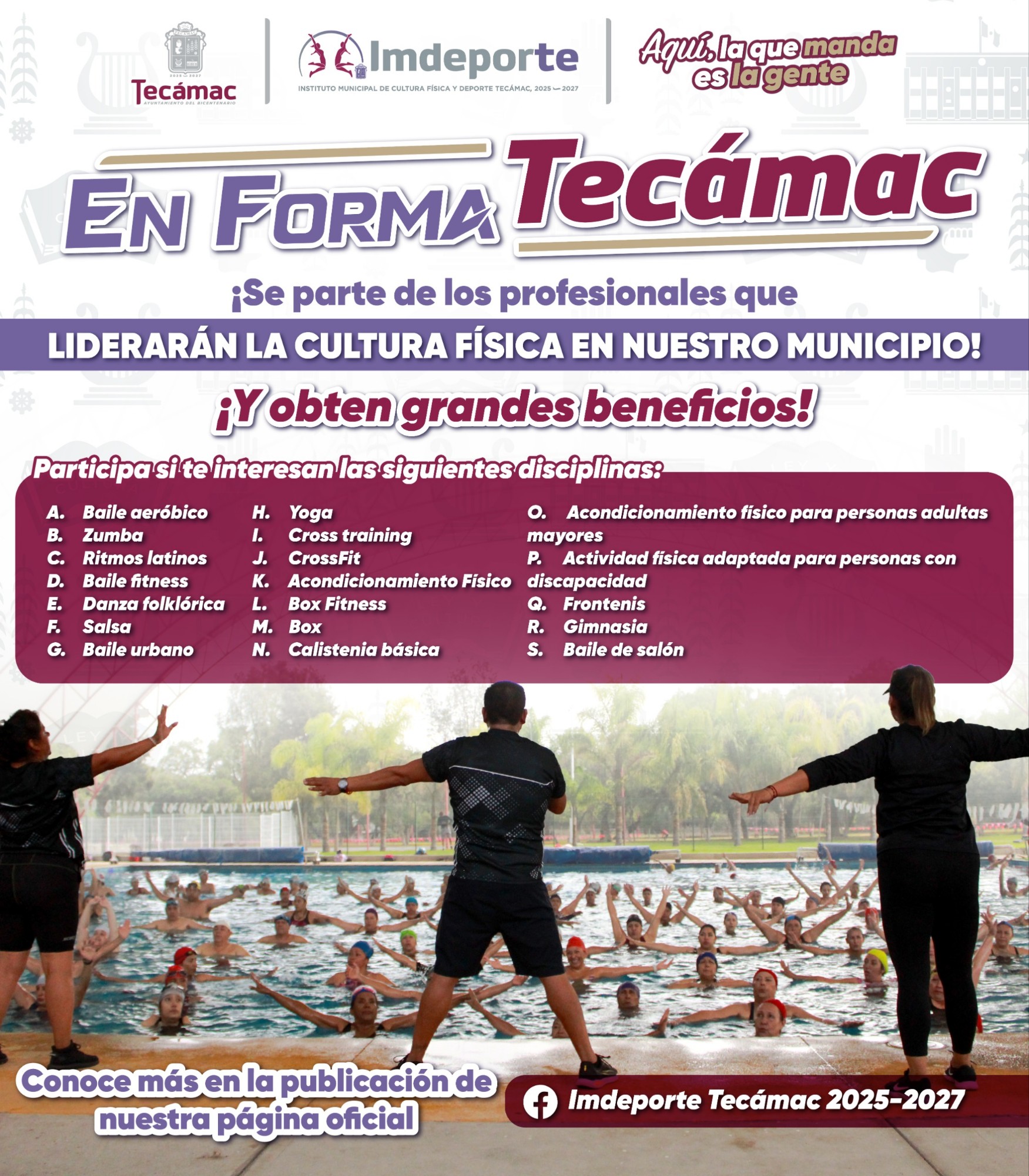 La administración que encabeza la alcaldesa Rosi Wong Romero, a través delInstituto Municipal de Cultura Física y Deporte (IMDEPORTE), lanzó la convocatoria para que instructores se integren al programa “En Forma Tecámac”, una estrategia