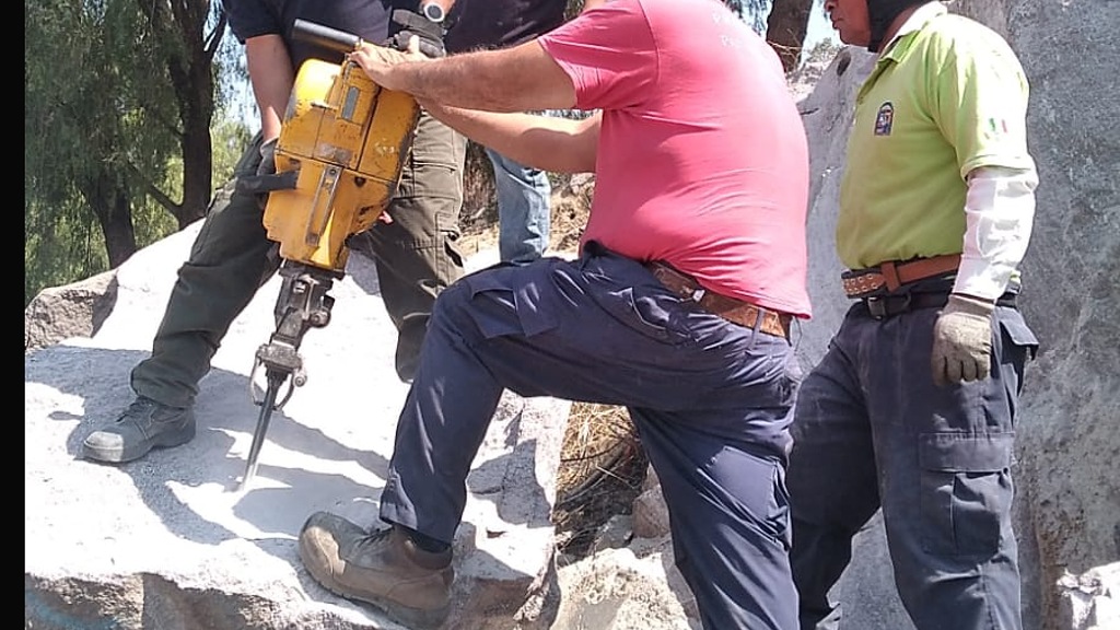 Tras una evaluación del equipo de Análisis de Riesgos, se determinó que el material representaba un peligro, por lo que personal especializado inició trabajos de fragmentación controlada y retiro de la roca, garantizando la seguridad en la zona.